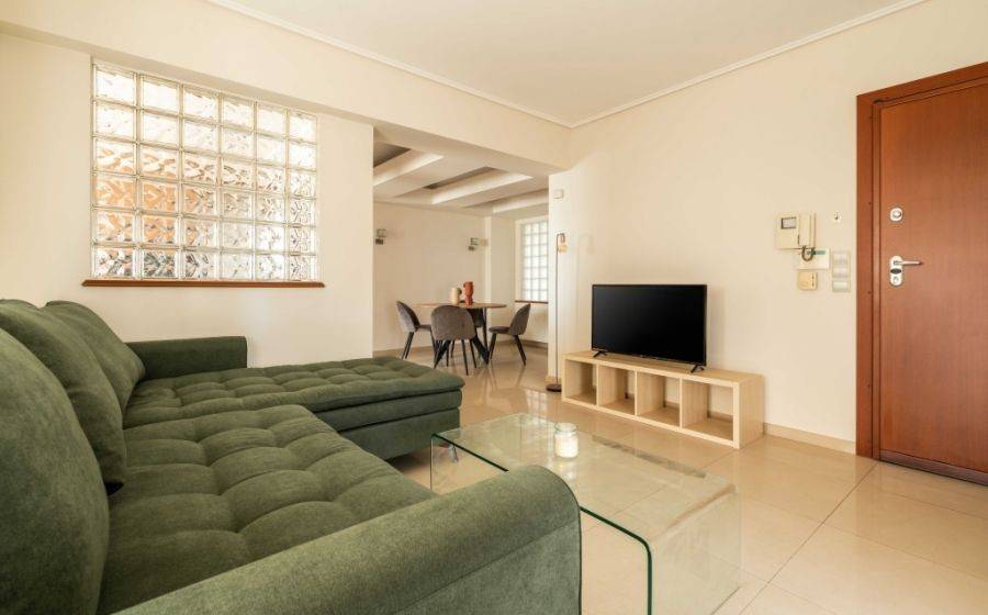 Glyfada, Golf, Apartment For Rent, 80 sq.m., Property Status: Amazing, Floor: 1rst, 1 Level(s), 2 Bedrooms 1 Kitchen(s), 1 Bathroom(s), 1 WC, Heating: Autonomous - Natural Gas, View: Cityscape, Building Year: 2008, Energy Certificate: C, 1 parking(s), Floor type: Wooden floors + Marble, Type of doors: Aluminum, Features: Elevator, Security door, Security alarm, CCTV, Storage room, Cable TV, Internet Line, Electric Appliances, Double Glazed Windows, Window Screens, Balcony Cover, Balconies, Pets Allowed, Luxury, Airy, Roadside, Bright, On Corner, AirConditioning, Solar water system, Painted, Renovated, Distance from: Seaside (m): 1600, Price: 1.640€. Yestayhomes, Tel: 6986749007