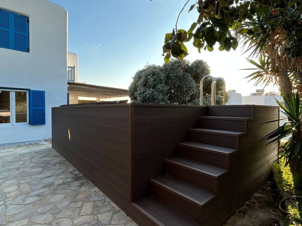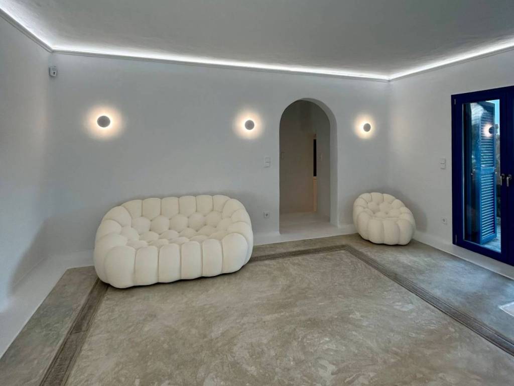 Luxury Seafront Maisonette with modern design in Mykonos Discover an exceptional fully renovated maisonette in one of Mykonos’ most sought-after seaside locations, offering breathtaking sea views and total privacy. Situated just steps from the sea, this unique property enjoys an unbeatable setting with Loulos beach only 50 meters away and Kali Livadi beach just 5 minutes by car. The maisonette features 6 spacious bedrooms and 5 elegant bathrooms, designed to combine comfort, functionality, and refined luxury. One of the bedrooms opens onto a private balcony with stunning panoramic sea views, perfect for enjoying Mykonos sunrises and sunsets. The total area of maisonette 232. 26 m2, it has a plot of exclusive use, 343. 6 m2 Maisonette is developed on 3 levels. The interior includes a large, bright living room and a second sitting room. The main living area is equipped with exclusive luxury Italian and French furniture. The maisonette is fully furnished, featuring king-size double beds in the bedrooms, wardrobes and bedside tables, and has an equipped kitchen with an internal yard. Kitchen appliances include Bosch kitchen equipment: oven, stove, dishwasher, hood and a large two-door refrigerator, ideal for both everyday living and entertaining. Outdoor living is equally impressive, with two spacious terraces offering comfortable lounge furniture, sunbeds, swings, and a private swimming pool with complete privacy. Additionally, owners have access to a shared swimming pool within the complex, which consists of only five exclusive maisonettes. For peace of mind, the property is equipped with security cameras,an alarm system, and a reinforced security door with an electric smart lock. This maisonette is an ideal choice as a luxury private residence, holiday home, or high-yield investment in Mykonos, combining prime location, high-end design, and exceptional amenities right by the sea.
