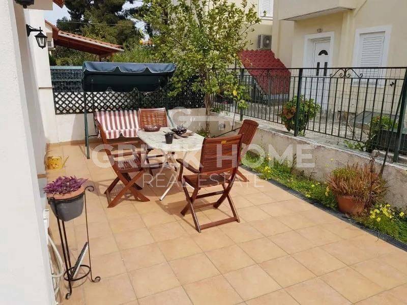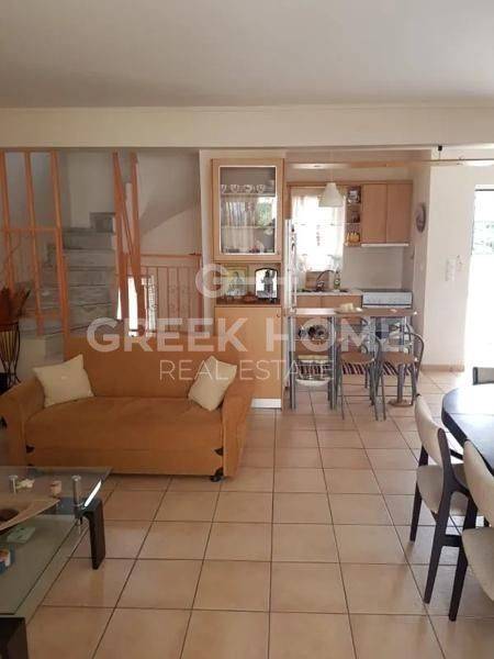 Saronikos, Nea Almyri - Independent Maisonette 143sqm plot 200sqm, fully furnished, bedrooms 3, levels 3, ground floor - upper floor - 1st, excellent condition, year built 2005, energy class C, living room, kitchen, bathroom, wc, heating type: autonomous (oil), air condition, quiet, dual aspect apartment, luminous, unobstructed view view, frontage, storage space, fireplace, balconies, garden, aluminum frames, double glazed windows, door screen, ceramic tiles floors, three phase electricity, luxurious, internal staircase, playroom, east-southern orientation, close to sea (up to 100m).