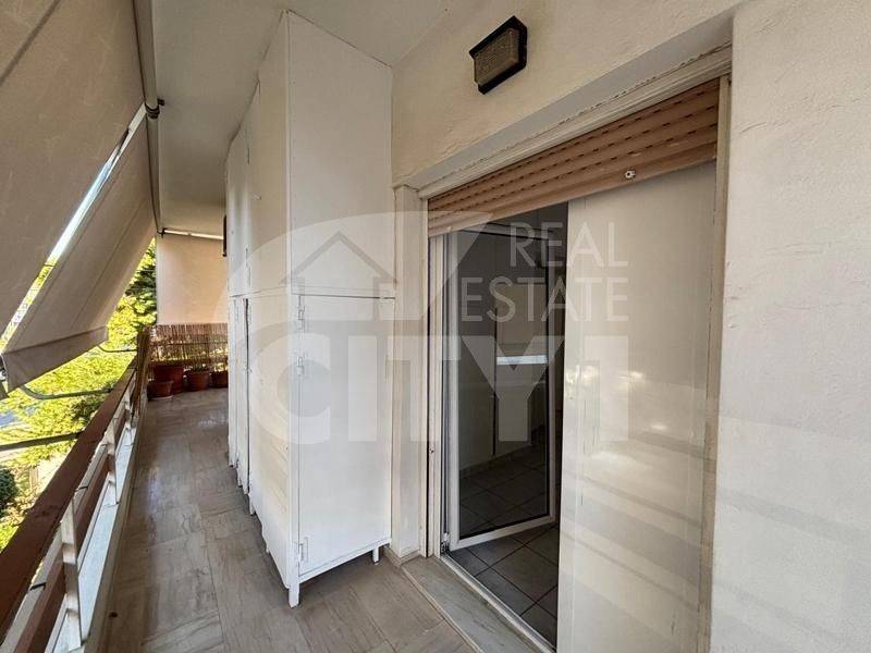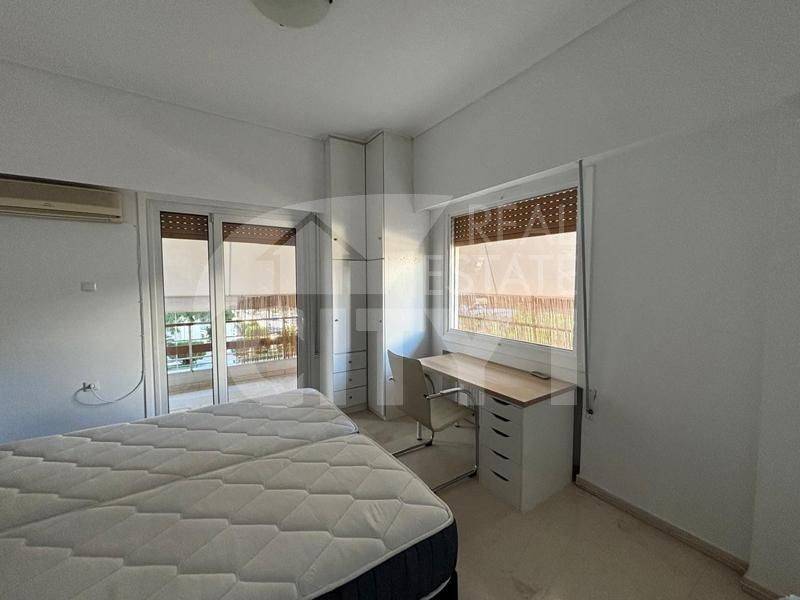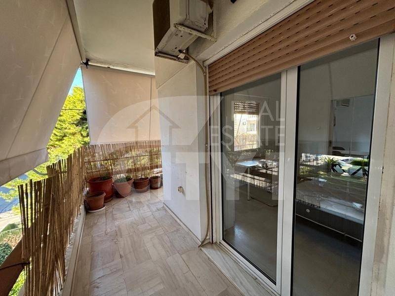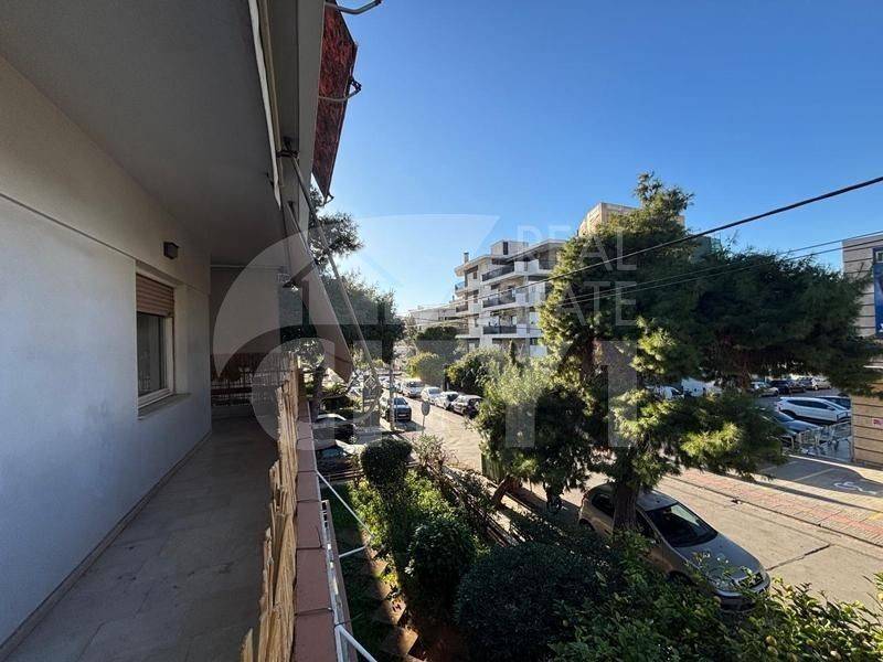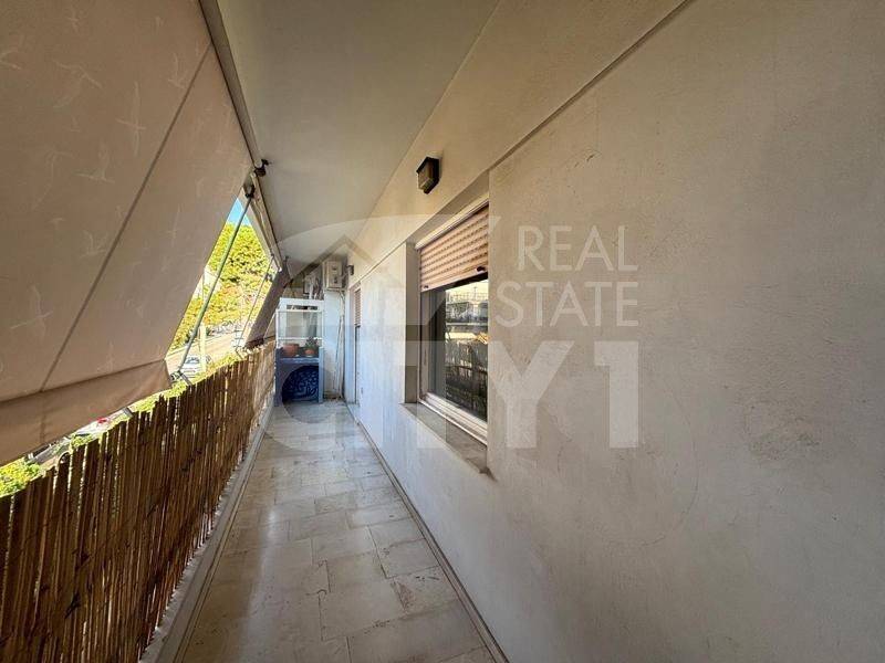 Glyfada - Apartment 80sqm fully furnished, bedrooms 2, levels 1, 1st, very good condition, year built 1980, energy class D, living room, hall, kitchen, bathroom, heating type: autonomous (electricity), air condition, quiet, dual aspect apartment, luminous, unobstructed view view, frontage, storage space surface area 1sqm, balconies, large balconies, balcony 20sqm, tents, elevator, aluminum frames, ceramic tiles floors, secure door, pets allowed, residential zone, east-western orientation, close to super market (up to 0).
