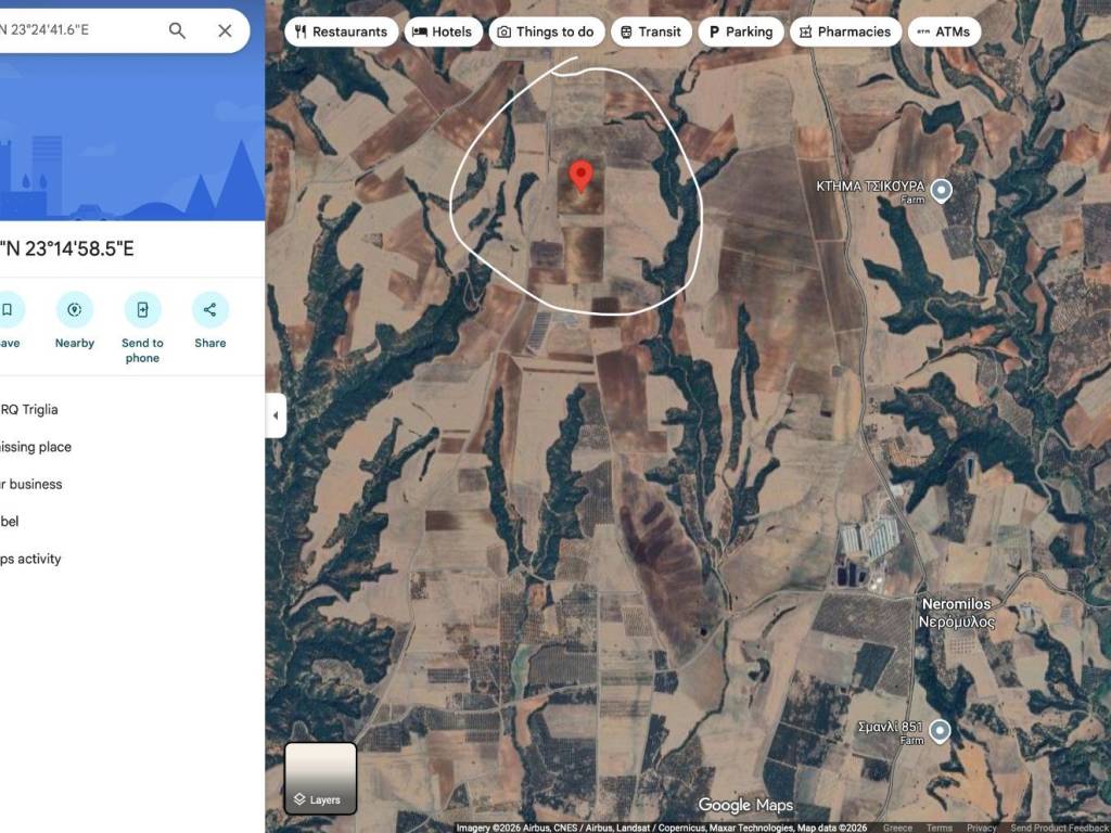 Πωλείται αγροτεμάχιο 30 στρέμματα ενιαίο στην περιοχή Νερόμυλος-Ροδιά-Μ. Βάβδος. Οι συντεταγμένες του κέντρου του αγροτεμαχίου για εύρεση στο χάρτη είναι: 40.**/****** Google Maps link: http://****.**