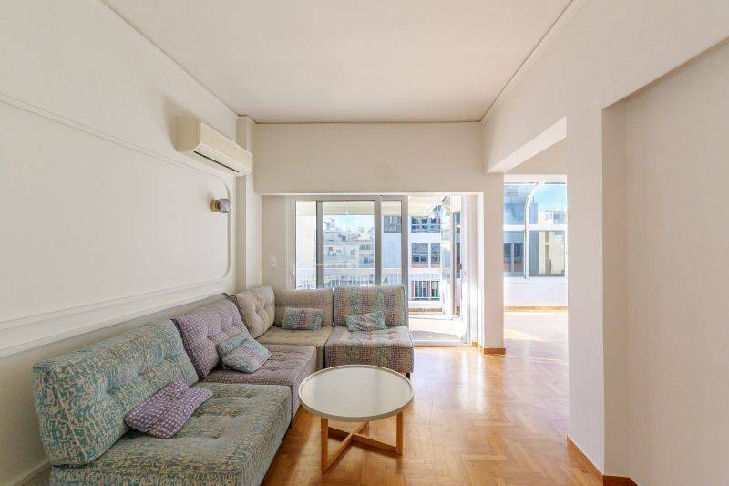 Available for rent: A fully renovated 5th-floor penthouse apartment of 100 sq.m., located near Kolonaki Square. It features two large bedrooms, a very spacious bathroom, a guest WC, and a comfortable balcony. The apartment offers abundant natural light, a functional layout, and timeless aesthetics.