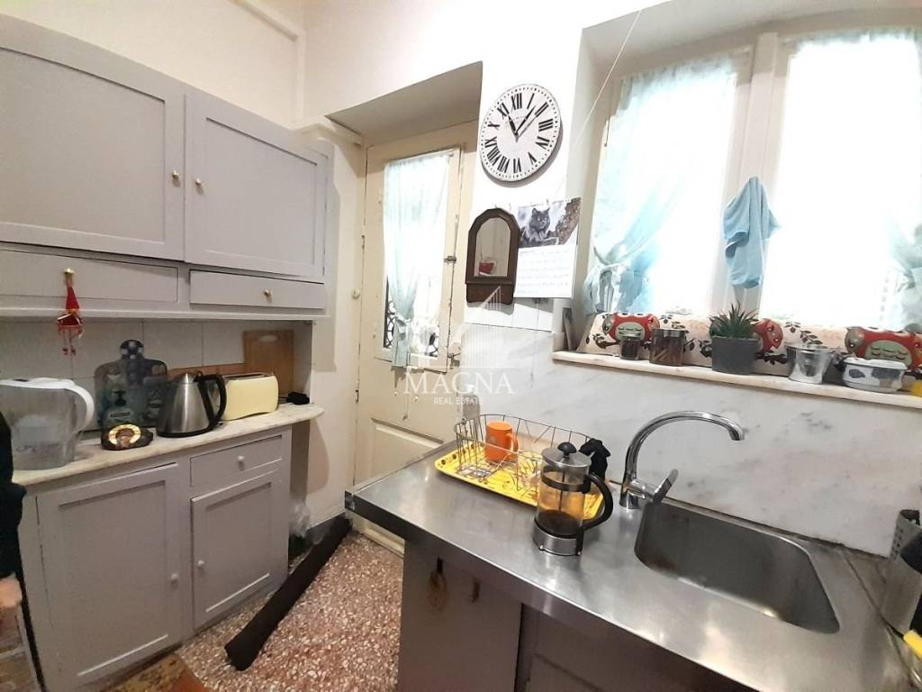 2ος Όροφος (77 τ.μ.): Διαμέρισμα με σαλόνι, κουζίνα, 2 υπνοδωμάτια, μπάνιο και πρόσβαση σε μεγάλη βεράντα με θέα σε αστικό τοπίο. Το ακίνητο διατηρεί τα κλασικά χαρακτηριστικά της εποχής του με δάπεδα από διαχρονικό μωσαϊκό και ξύλο, ενώ διαθέτει κεντρική θέρμανση πετρελαίου, εντοιχιζόμενες ντουλάπες και αποθήκη 20 τ.μ. Είναι διαμπερές, φωτεινό και ιδανικό για εκμετάλλευση ή ιδιοκατοίκηση.
