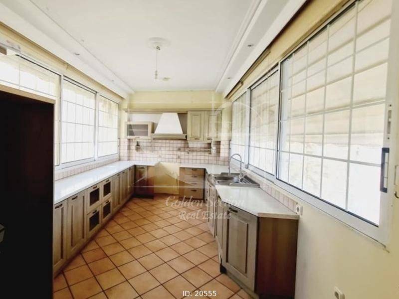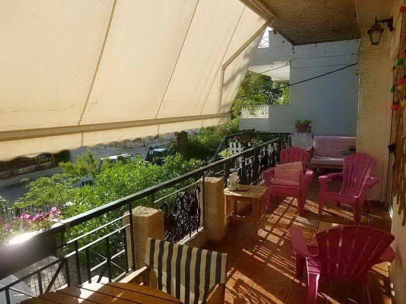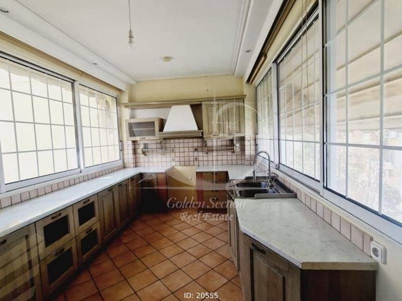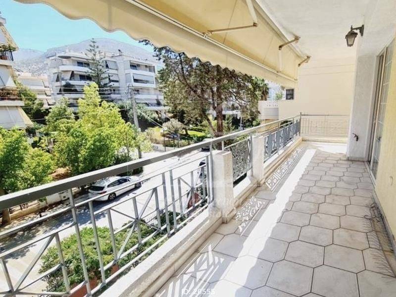 Glyfada - Apartment 120sqm furnished fully, bedrooms 3, levels 1, 1st, renovated, year built 1980, renovation year 2020, energy class E, living room, kitchen, bathroom, wc, heating type: autonomous, heating medium oil, air condition, parking, parking type/lots, dual aspect apartment, luminous, corner, frontage, solar heater, fireplace, balconies, balcony size 15sqm, tents, elevator, garden, frames aluminum, secure door, residential zone, eastern orientation, access from inclined, short term lease, nearby sea (up to 3000m).