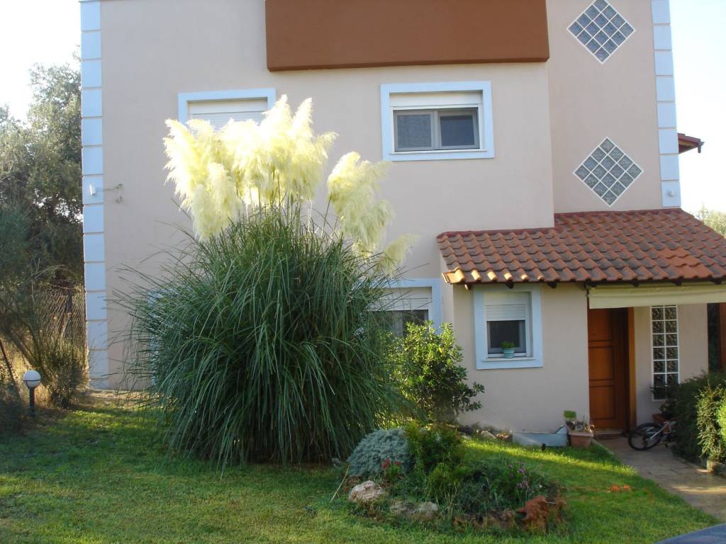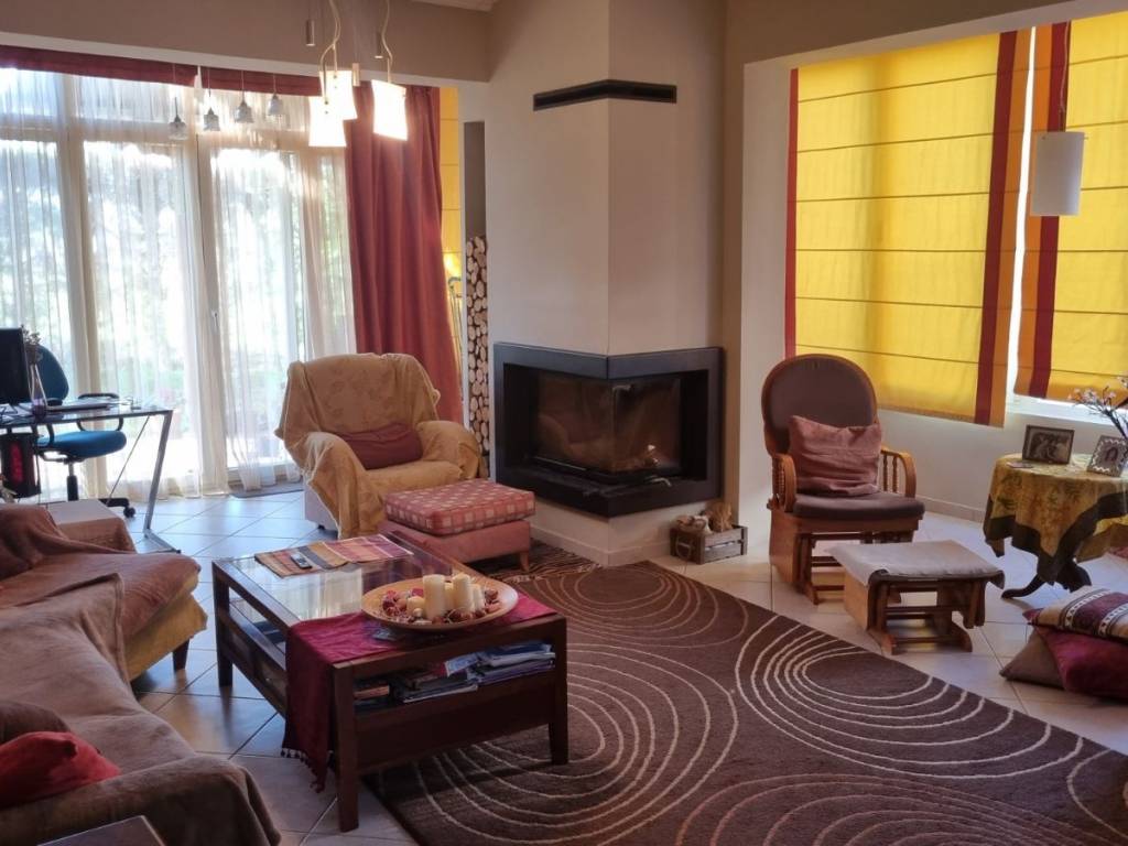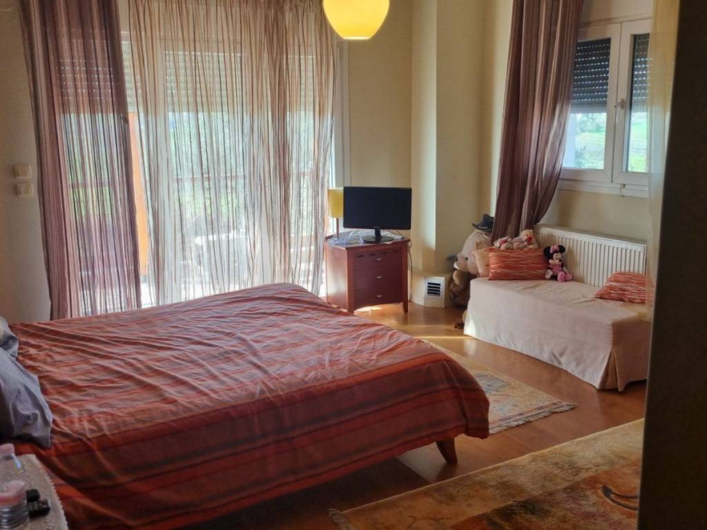 Detached house on 2 levels and attic. Living room and kitchen at garden level. Sunny and pleasant with large master bedroom, utility rooms, 2 parking spaces and private garden with pergola. It has natural gas heating and an additional powerful energy fireplace that heats the upper floor. It also has a large 150 liter solar panel. It has network cabling in all areas It provides privacy and security as it is not visible and accessible from the road or any other point. It is 8 km from the "Macedonia" airport and direct access to the road leading to Halkidiki. It is also 15 minutes from the beaches of Epanomi.