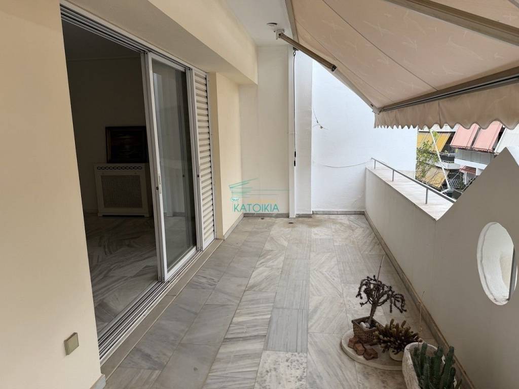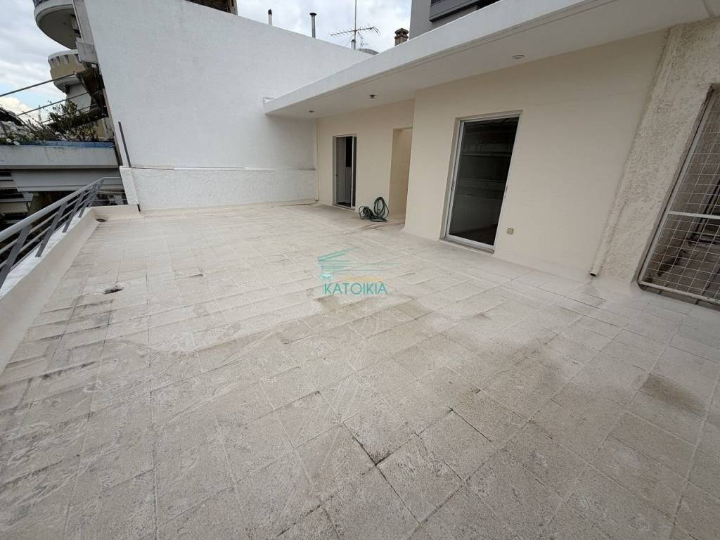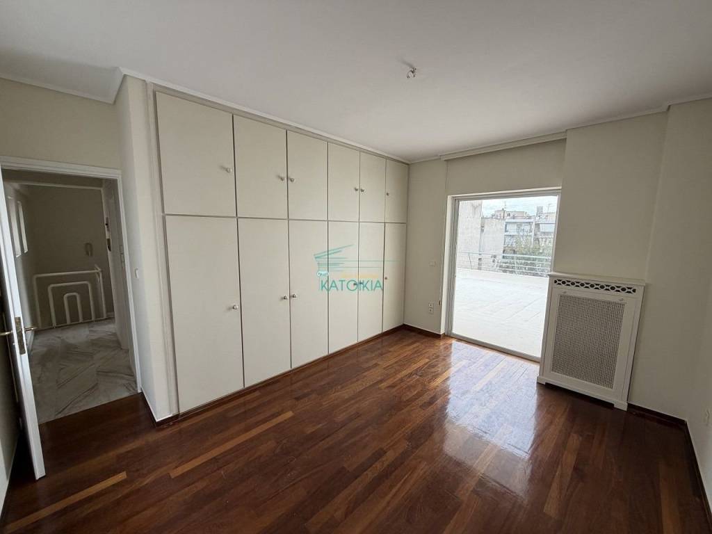 Konstantinos Kalafatis Park, in the heart of the penthouse area, maisonette with large terraces (80 sq.m.) with a total area of 160 sq.m. on the 4th-5th floor. It consists of a spacious living room with fireplace, kitchen, 3 bedrooms with the possibility of a 4th, 2 bathrooms, 7 sq.m. storage room, and 10 sq.m. terrace. It consists of a spacious living room with fireplace, kitchen, 3 bedrooms with the possibility of a 4th, 2 bathrooms, 7 sqm storage room, and 1 parking space. It has a security door, aluminum window frames, independent oil heating, wood flooring, and marble flooring. A few steps from the central square and the market. code 58398