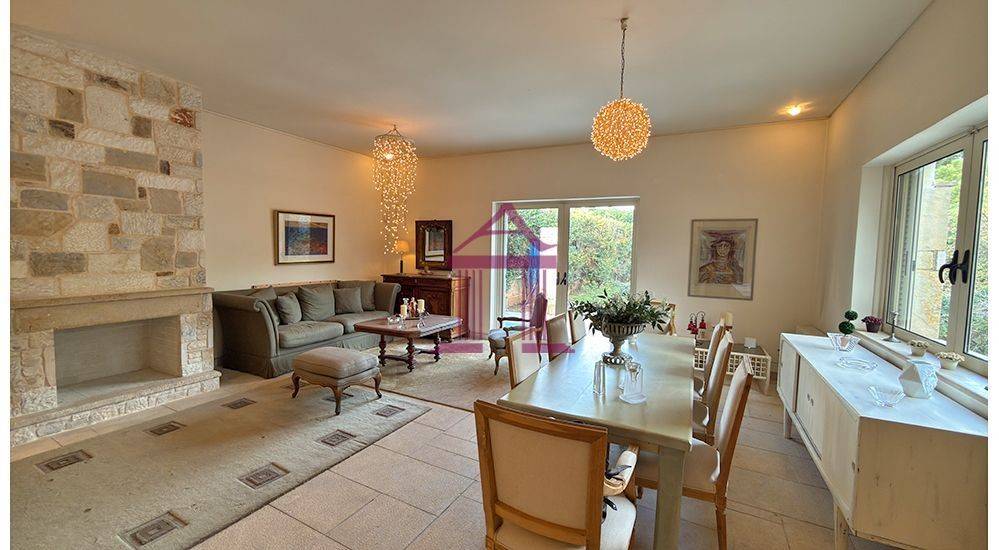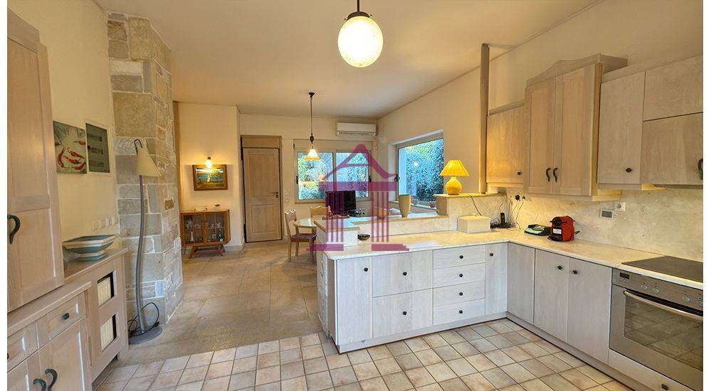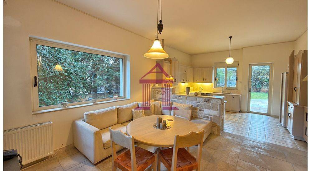 Nea Makri – Detached House for Longterm Rent, 300 sq.m. An exceptional detached house of high aesthetic quality is available for rent, with a total surface area of 300 sq.m., developed over two levels (ground floor and 1st floor), plus an additional 150 sq.m. basement. Ground Floor: Comprises a spacious living room with fireplace, dining area, kitchen with daily sitting area, office space, and a WC. 1st Floor: Includes a sitting area, three bedrooms, one of which is a master bedroom with en-suite bathroom, as well as two additional bathrooms. Basement (150 sq.m.): Can be used as storage space or configured as a playroom, guest area, etc., as all necessary installations are already in place. Features & Amenities: Aluminum window frames with double glazing and insect screens Autonomous heating per level (oil) Triple-energy solar water heater Air conditioning in all areas Security doors, alarm system, and cameras Large landscaped garden with lawn, automatic irrigation, borehole, and BBQ Covered parking space for two cars The residence is constructed with top-quality materials (marble, stone, and more) and stands out for its refined aesthetic. Available furnished with all electrical appliances or unfurnished, with the option to store the furniture in the basement. Rental Price: €2,100, Pavlidis Property Services, Tel.: +30 22940 96157, +30 6970 573760