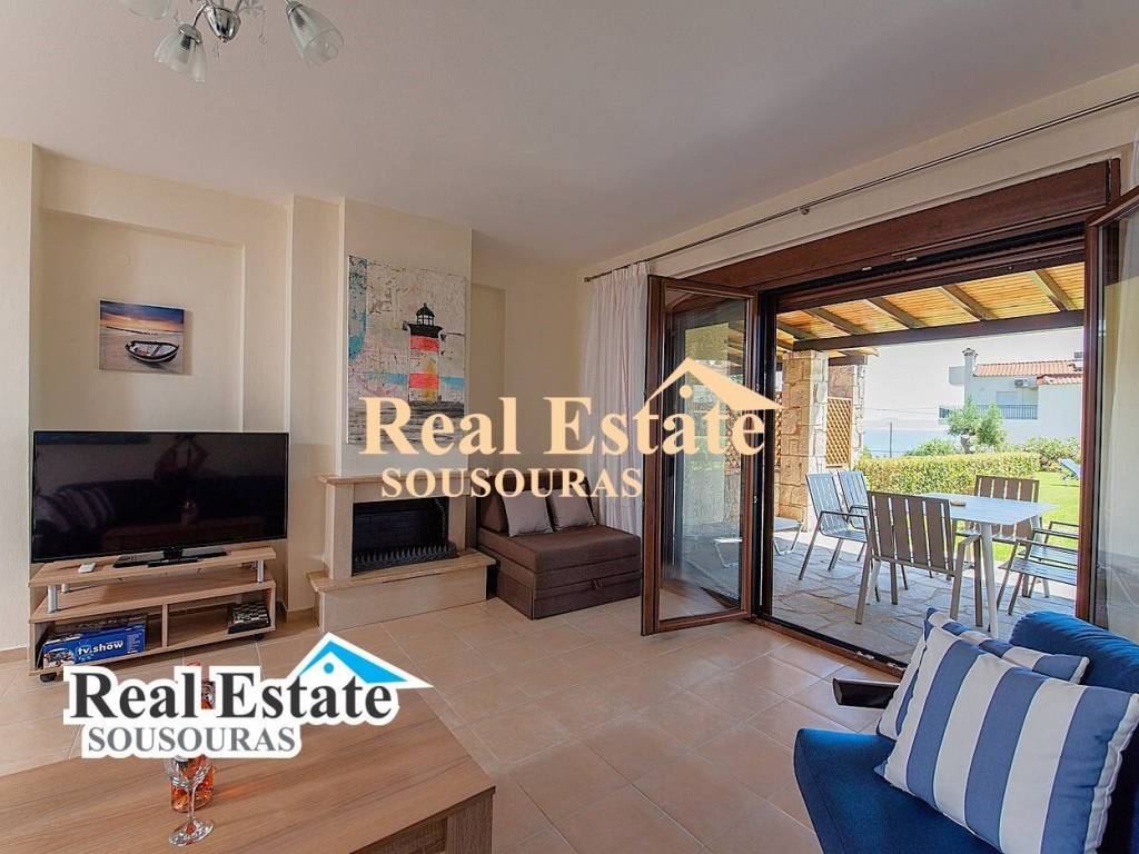 Excellent maisonette 280 m. from a wonderful beach Developed on two levels and consists of two bedrooms, two bathrooms, Italian kitchen, dining room and living room with a large terrace in front of the garden. It has fully furnished security doors, soundproof windows, air conditioning, fully furnished, and a wonderful garden with automatic watering system and exclusive parking space You are located 2Km from the market of the tourist town of Kriopigi, with luxury shops, super markets, café bars and restaurants, 70 m from a unique beach with crystal clear waters and fine sand, 11km from the Hospital and 91km from Thessaloniki Airport. For more information just call +30 6977246200