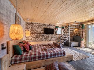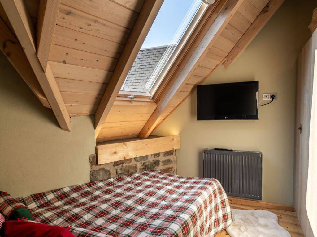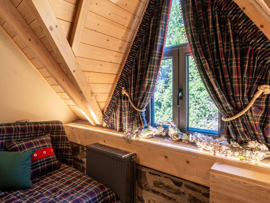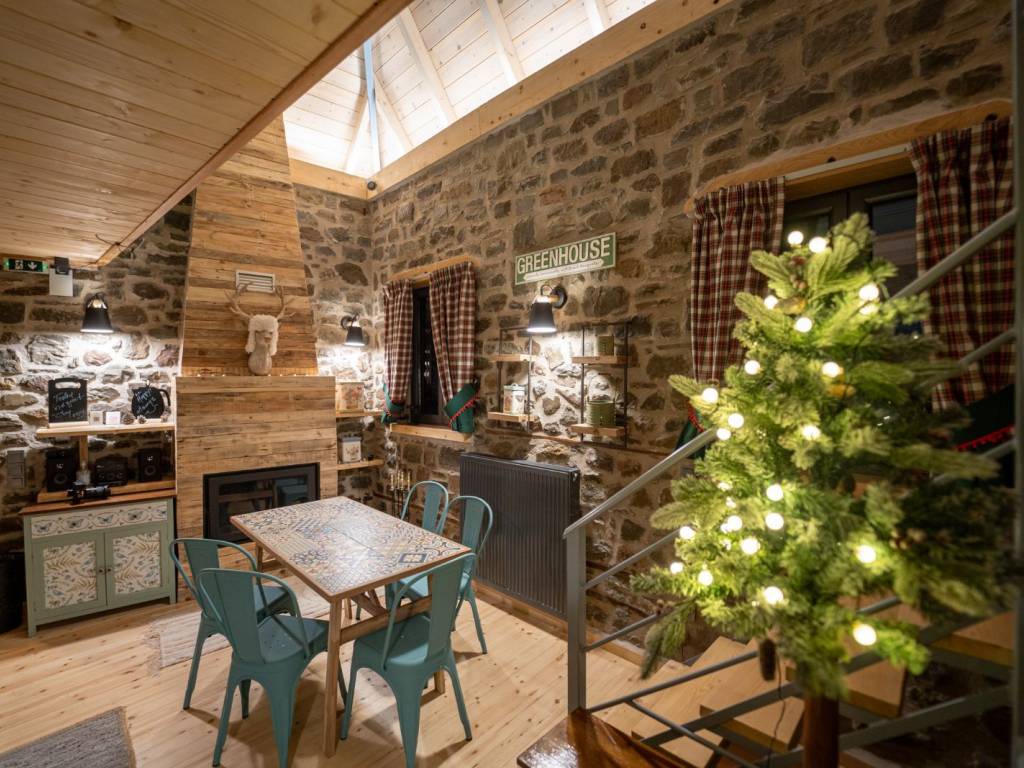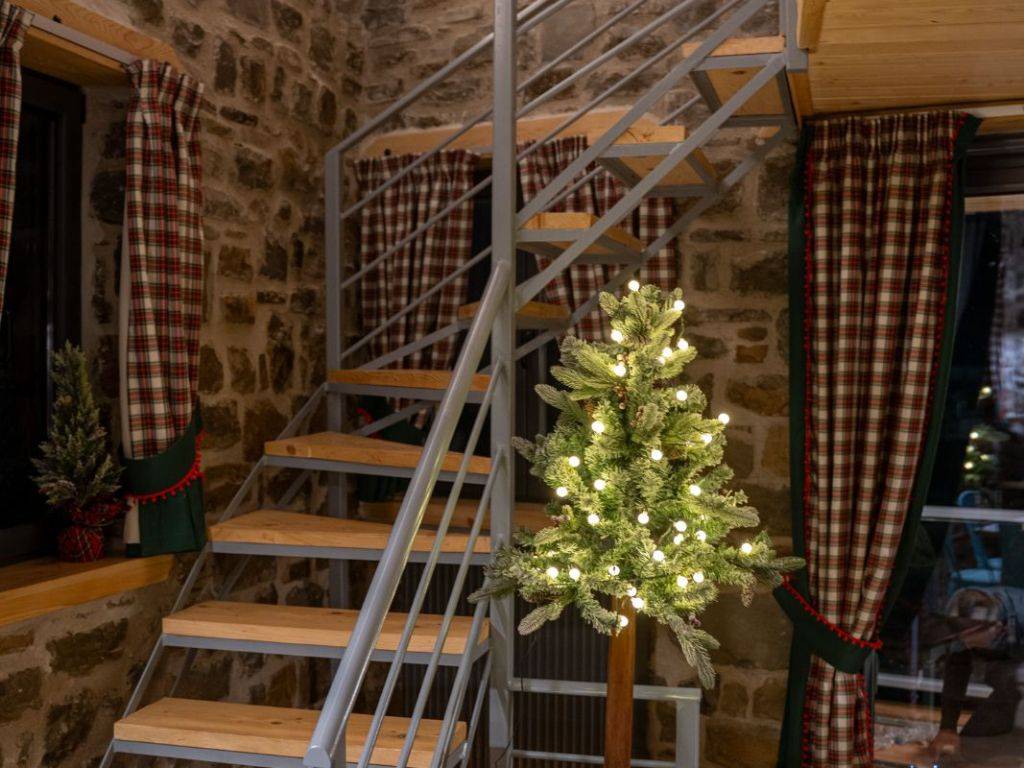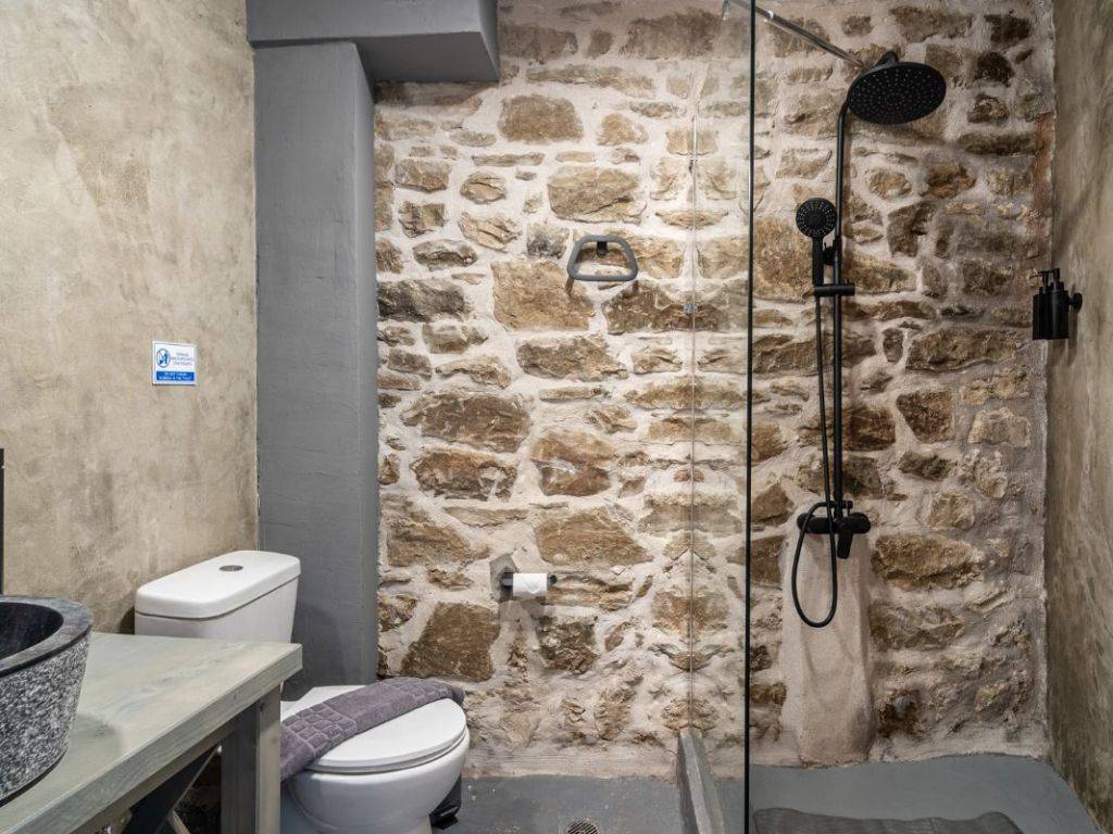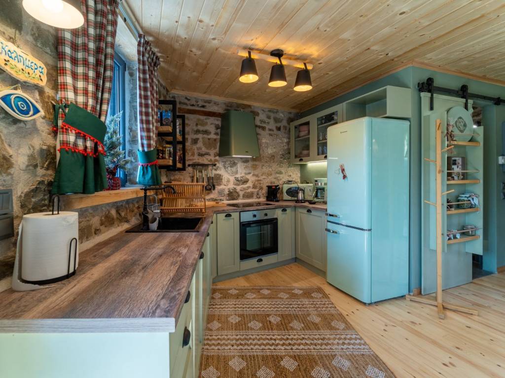 ΠΡΑΣΙΝΟ Στους χώρους μας, σε ένα τριώροφο πλήρως ανακαινισμένο κτίριο, μπορούμε να φιλοξενήσουμε ιδανικά έως 9 άτομα ( 8 ενήλικες + 1 παιδί ) από τα οποία το ένα να είναι παιδί. Ας ξεκινήσουμε την εικονική περιήγηση: Μπαίνοντας από την κεντρική είσοδο του σπιτιού αντικρίζεται την τραπεζαρία. Στον ίδιο χώρο υπάρχει μία πλήρως εξοπλισμένη κουζίνα με και ένα ιδιαίτερο μπάνιο με ντουζιέρα. Η μπαλκονόπορτα στον ίδιο όροφο οδηγεί στο μαγευτικό μπαλκόνι με την πανοραμική θέα. Ανεβαίνοντας στον επάνω όροφο (σοφίτα) μέσω μιας εσωτερικής ξύλινης σκάλας, υπάρχει ο καθιστικός χώρος (open space) με καναπέ – κρεβάτι (1,40×1,90 cm) απ’ όπου μπορείτε να απολαύσετε τη φανταστική θέα προς το χωριό. Στον ίδιο όροφο υπάρχουν άλλα δύο υπνοδωμάτια. Στο ένα υπνοδωμάτιο υπάρχει ένα διπλό κρεβάτι (2,60×1,20 cm) με ένα παράθυρο στο πλάι. Στο δεύτερο υπνοδωμάτιο υπάρχουν δύο μονές υπερμεγέθεις κρεβάτες (2,00×1,60 cm και 2,00×0,90 cm) όπου μπορούν να κοιμηθούν ένα άτομο στην κάθε μία. Εδώ, υπάρχει το τεράστιο παράθυρο με θέα στο πίσω μέρος του σπιτιού και σε ένα καταπράσινο τοπίο. Κατεβαίνοντας από την κουζίνα στον κάτω όροφο υπάρχει ενιαίος χώρος με γωνιακή ντουλάπα κοντά στο κορμόχτιστο king size κρεβάτι (2,00×1,60 cm). Στον ίδιο χώρο υπάρχει το απαραίτητο μπάνιο με ντουζιέρα και στο υπνοδωμάτιο φιγουράρει η «έξυπνη» πολυθρόνα – κρεβάτι – πιθανά για το παιδί του ζευγαριού που θα κοιμηθεί σε αυτό το master bedroom. Αυτός ο τελευταίος χώρος έχει πρόσβαση στην αυλή του σπιτιού. Έξω από το κατάλυμα υπάρχει ελεύθερο παρκινγκ.