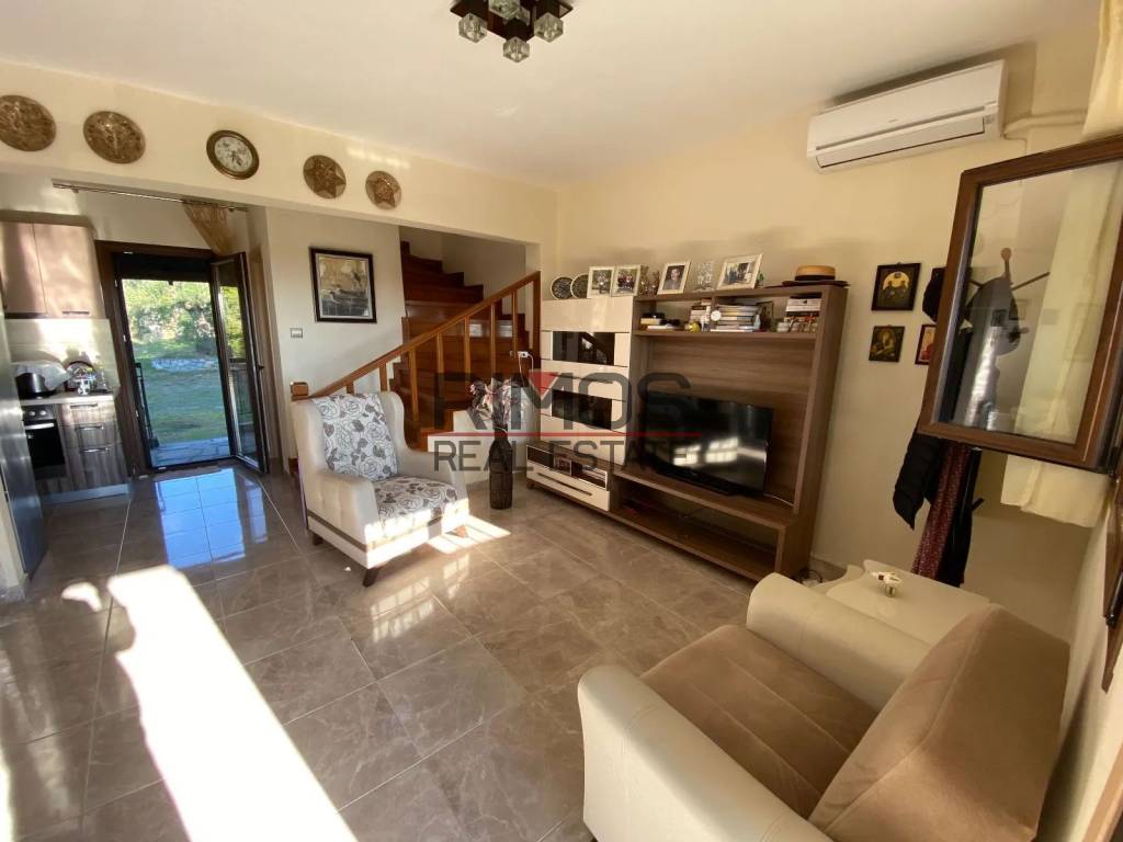 Κατά Αποκλειστικότητα εξαιρετική μεζονέτα 90τμ.περίπου, προσόψεως με θέα θάλασσα, Με πολύ όμορφη διαρρύθμιση, πολύ φωτεινή κ διαμπερή, Στο πρώτο επίπεδο μεγαλοπρεπής ημιώροφος από μπροστά ισόγειο από πίσω, το οποίο διαθέτει σαλοτραπεζαρία με τζάκι, κουζίνα,wc,περιμετρικά βεράντες, δύο είσοδοι μπροστά και πίσω, στο δεύτερο επίπεδο (πρώτος όροφος) διαθέτει δύο ευρύχωρα δωμάτια , με μεγάλες ντουλάπες, χολ και μπάνιο. τέλος υπάρχει και τρίτο επίπεδο το οποίο είναι ένας ενιαίος χώρος στο ημιυπόγειο με παράθυρα. Εξοπλισμένο με ακριβά επώνυμα έπιπλα και με επώνυμες ηλεκτρικές συσκευές, θωρακισμένη εξώπορτα, οικόπεδο 1600τμ., κήπος περιμετρικά με ελιές και φυτά, κιόσκι με κτιστή ψησταριά, σε πολύ καλή θέση, όμορφη και ήσυχη γειτονιά, Απόσταση από τη θάλασσα 320 μέτρα.