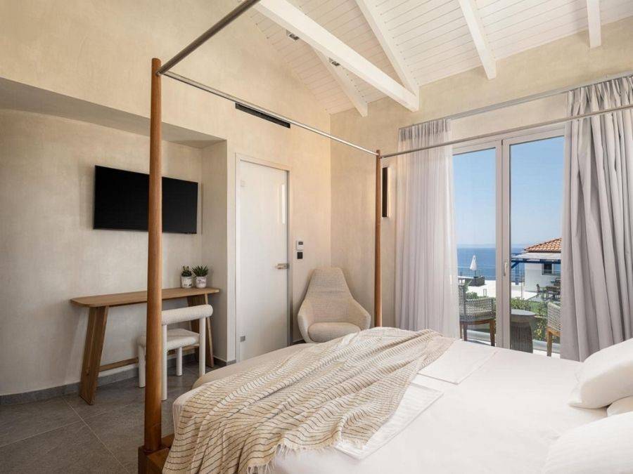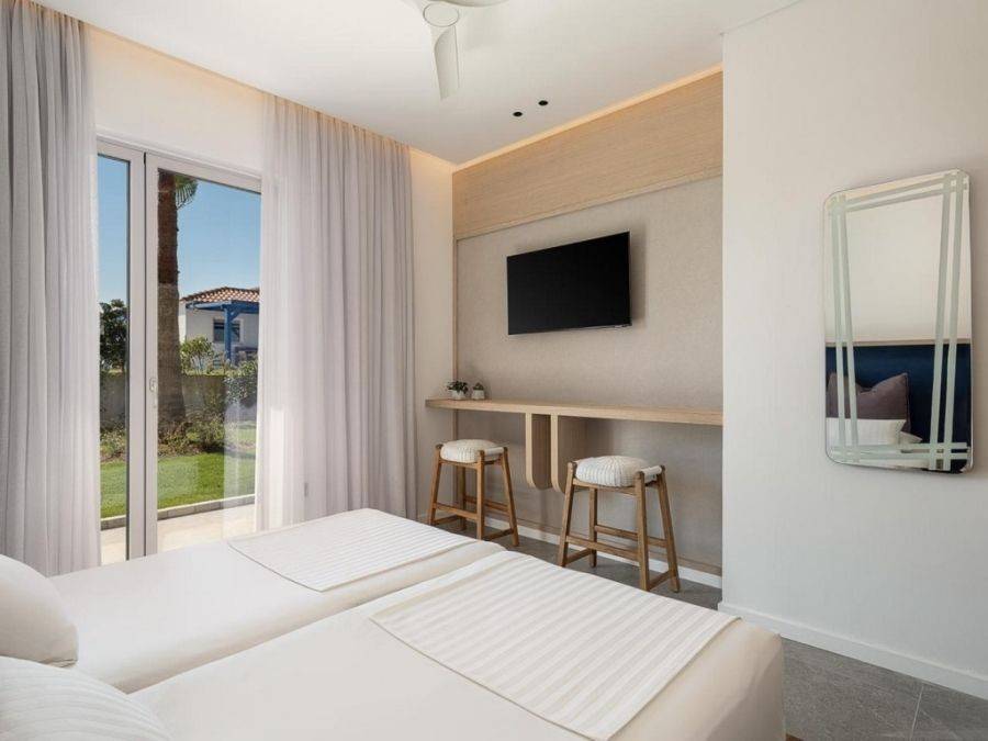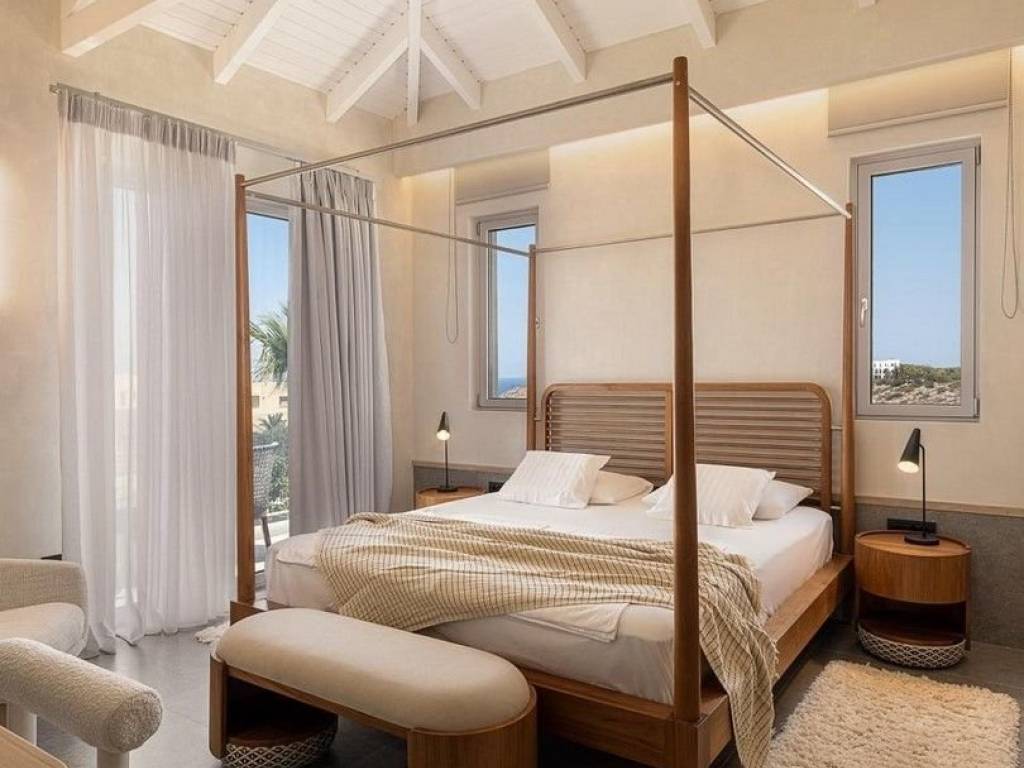 Tersanas area – Akrotiri In a privileged and utilized residential and tourist part of this popular area, which is a magnet for locals and foreigners, and continues to develop rapidly by both individuals and professionals, is offered for sale in a state-of-the-art residential complex, an autonomous villa of high aesthetics with an EOT License, with a total area of 192.08 m2, within a fenced and beautifully landscaped and tree-planted section of a plot with an area of 1.361.91 m2 (Vertical ownership). The residence is characterized by minimal and modern architecture, earthy tones that create a natural environment, in conjunction with the architect’s artistic touches that adorn the villa both internally and externally. Great emphasis has been placed on creating well-designed interior and exterior spaces that combine comfort with ergonomics - functionality with finesse for the most comfortable accommodation. Layout: The residence is developed on two levels, and the communication is achieved through a staircase. -The second level, which is also the main entrance to the residence, hosts an impressive open space with large glass panels to enjoy the captivating view of the sea, either while relaxing in your living room or enjoying your meal in the wonderful dining room. At the same level is a high-end kitchen with branded electrical appliances, a bathroom, a spacious bedroom with private bathroom and private balcony and has direct access to the outdoor area which hosts another dining room with pergola, an outdoor living room and the private pool. -The first level hosts 3 very spacious bedrooms with private bathrooms, a Playroom with Smart TV, sofa and 2 bunk beds, laundry area, storage and utility areas and has direct access to the wonderful garden and access via stairs to the private pool. -All areas of the residence are decorated with designer furniture and accessories. Natural lighting is abundant. The floors are covered with high quality tiles. In addition, it features: -Fireplace -Aluminum frames with double glazing -Private pool - Sun loungers -BBQ & outdoor fireplace -Smart TV in all rooms -Satellite TV - Wi-Fi- Air conditioning -Excellent linens -and other household items -Ceiling fans -Wood stove -Patios and verandas with stunning views -Courtyard area with lawn and ornamental plants -Outdoor parking -Shared tennis court within the complex. It is ideally offered for those interested in quality accommodation in an area of exceptional beauty, but also for investors to whom it can offer a very decent income through short-term rental. Public utilities and other amenities for any requirement or need are in a short drive in Kounoupidiana area. Wonderful organized sandy beaches, sights, trails for nature lovers are located in the wider area. The center of Chania and the Old Town are 13 kilometers away. The Airport is in a distance of 8km.