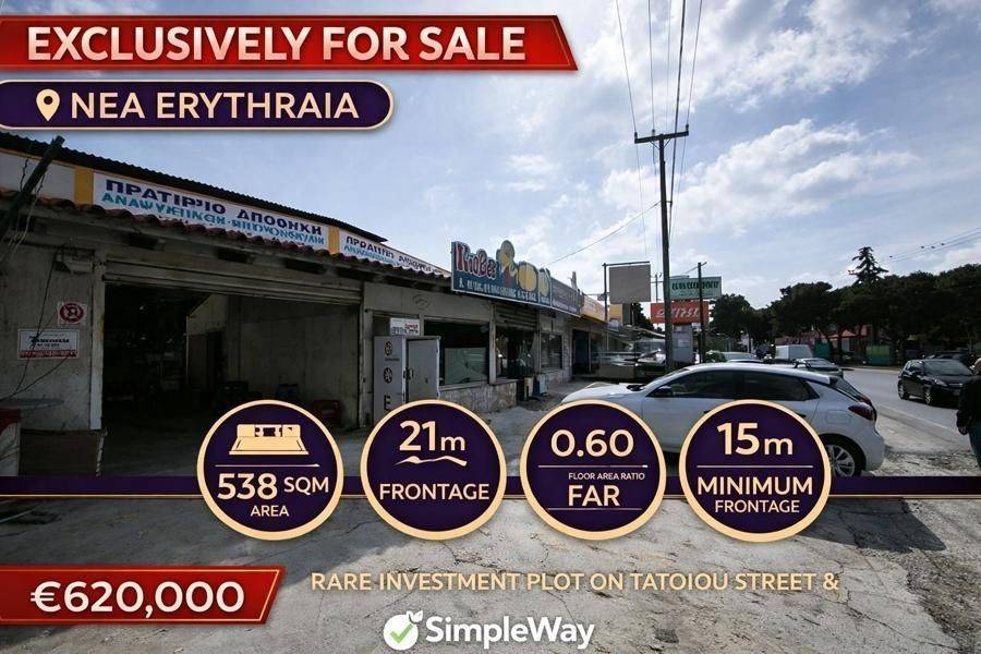 Για την καλύτερη εξυπηρέτηση σας, παρακαλώ προτιμάτε να αποστέλλετε μήνυμα ενδιαφέροντος μέσω της σελίδας αγγελιών και θα επικοινωνήσουμε σύντομα μαζί σας. Εναλλακτικά μπορείτε να μας καλείτε καθημερινά Δευτέρα - Παρασκευή 10:30-19:30 στα τηλέφωνα 21000102835 & 6934867725. Το σπάνιο οικόπεδο είναι στην κατοχή μας σε αποκλειστικότητα,σε μια από τις πιο όμορφες περιοχές της Αθήνας σου προσφέρει τη δυνατότητα να ζεις στην εξοχή και ταυτόχρονα να έχεις εύκολη πρόσβαση σε αγορές όπως(Κηφισιάς,mall) και σε επιλογές διασκέδασης με ωραία μοντέρνα εστιατόρια μπαρ και καφέ. Γειτνιάζει με την Εκάλη και απευθύνεται σε απαιτητικό πελατολόγιο. Η Νέα Ερυθραία βρίσκεται σε πολύ βολική τοποθεσία, με άμεση πρόσβαση στον αυτοκινητόδρομο, επιτρέποντας εύκολη και γρήγορη μεταφορά στο κέντρο της Αθήνας μέσα σε 20 λεπτά, ενώ βρίσκεσαι στο διεθνές αεροδρόμιο μέσα σε 40 λεπτά. Η κοντινή απόσταση από την Εθνική Οδό προσφέρει τη δυνατότητα για γρήγορες αποδράσεις το Σαββατοκύριακο. Επενδυτικό δυναμικό: Η Νέα Ερυθραία ήταν πάντα ελκυστική για τους επενδυτές σε ακίνητα, και γι’ αυτό οι τιμές των ακινήτων πάντα θα προσφέρουν μια καλή απόδοση της επένδυσης του. Να θυμίσω ότι στη μονόπολη η οδός Τατοϊου ήταν πάντα μια ακριβή κάρτα. Οικόπεδο: Ένα από τα λίγα οικόπεδα που έχουν απομείνει επί της οδού Τατοϊου. Tο σπάνιο αυτό οικόπεδο είναι διαμπερές, έχει πρόσοψη επί της Τατοίου 21m και πίσω πλευρά σε πεζόδρομο και παιδική χαρά 14,4τμ Εμβαδό 538,38 τ.μ. Ελάχιστο Εμβαδό: 500 τ.μ. Ελάχιστο Πρόσωπο: 15 μ. προ 31-5-1985 Ελάχιστο Εμβαδό: 150 τ.μ. Ελάχιστο Πρόσωπο: 7 μ. Σ.Δ.: έως 300 τ.μ.: 0.60 από 300 τ.μ. κ' άνω 0.40 Κάλυψη: έως 300 τ.μ.: 40% από 300 τ.μ. κ' άνω 30% Ύψος: 7.50 μ. + 1.50 μ. στέγη Υπεύθυνος Ακινήτου: Απόστολος Γιαννακαράς Τηλ. Επικοινωνίας: 6972727697 ΜΕΣΙΤΙΚΟ ΓΡΑΦΕΊΟ SIMPLE WAY Λ.ΚΑΡΕΑ 64 ΤΚ:16233 ΤΗΛ:2100102835 / 6934867725 10:30-19:30