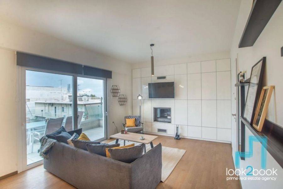 In the center of Alimos, an excellent newly built apartment, 65 sq.m., on a plot of 250 sq.m., 1st floor, is available for rent. It was built in 2020 and consists of: living room with fireplace, equipped kitchen, 1 bedroom and 1 bathroom. The heating is underfloor autonomous - electricity and has air conditioning, solar and storage. It is luxurious, airy and bright and has an unlimited sea view. Available for short-term rental. Price: €1,400, Ref.: 41879, Look2Book Tel: 2108940006, e-mail: info@look2book.gr, website: www.look2book.gr