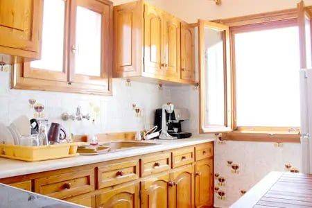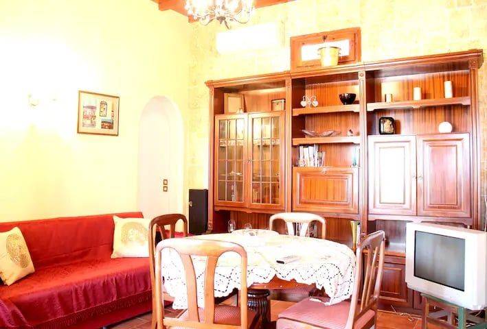 An 82 sq.m. ground floor detached house is available for sale, consisting of 2 separate houses with separate entrances. 1) One 62 sq.m. with 2 bedrooms, 1 bathroom, 1 living room, 1 dining room with fireplace, 1 kitchen, and a courtyard with unlimited sea views. 2) A studio apartment consisting of 1 bedroom, 1 bathroom, separate kitchen, and small courtyard. The entire house has also a west-facing courtyard with fruit trees (orange, lemon, etc.). Ideal for year-round living, as a vacation home, or as an investment opportunity.
