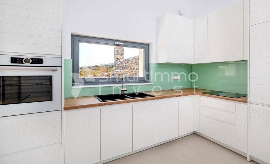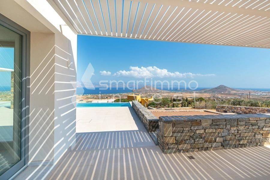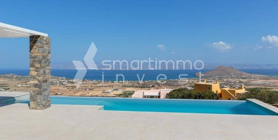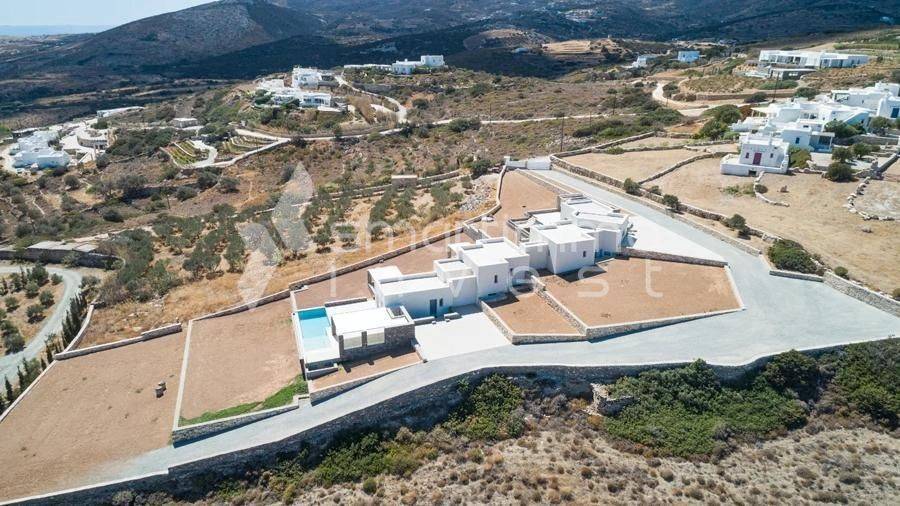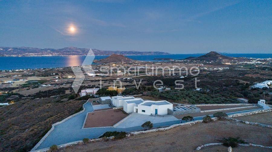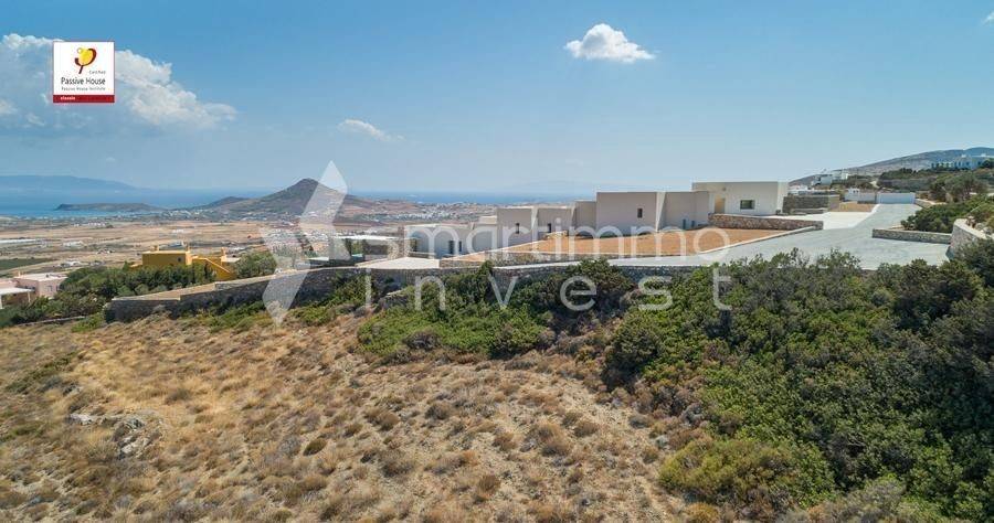 This exceptional newly built luxury villa is located in a privileged hilltop position on the island of Paros, enjoying a south-facing orientation and uninterrupted panoramic views over the Aegean Sea, including Mykonos, Naxos and Ios. It is a certified Passive House (A++) by an independent certification body, representing a pioneering example of sustainable, energy-efficient residential architecture in the Cyclades. Designed, constructed and equipped entirely according to Passive House principles, the villa offers an outstanding level of comfort, environmental responsibility and long-term value. Its high-performance building envelope with superior thermal insulation and airtightness, combined with optimal orientation and passive solar gains, ensures a stable and comfortable indoor climate throughout the year, regardless of external weather conditions. Thermal comfort is achieved exclusively through the pre-heating or pre-cooling of fresh air via a state-of-the-art mechanical ventilation system with heat recovery, eliminating the need for conventional heating or cooling systems, even during extreme winter or summer conditions. During the summer months, passive cooling strategies such as effective solar shading, night-time natural ventilation and controlled heat management maintain a pleasantly cool interior environment. The villa consumes up to 90% less energy for heating and cooling compared to conventional buildings, achieving energy class A+ and an exceptionally low annual operating cost of approximately €300 for year-round use. This makes the property an ideal choice both as a primary residence and as a high-end investment with minimal energy footprint and future-proof sustainability. The residence is developed on two main levels, with a total living area of approximately 221 sq.m., following the natural slope of the land to ensure unobstructed views and abundant natural light in all principal spaces. The upper level of approximately 145 sq.m. features a spacious and welcoming living room with breathtaking sea views, creating a serene atmosphere of privacy and relaxation. The fully equipped, bright kitchen with a large window is slightly elevated, offering functional separation while maintaining visual continuity. Two comfortable bedrooms, including one master bedroom with en-suite bathroom, along with two additional bathrooms, complete this level, all benefiting from sea views. The lower level of approximately 75 sq.m. comprises two additional bedrooms, one of which is a master, and two bathrooms, offering enhanced privacy and direct access to the expansive terrace and the impressive infinity pool. This level also houses the technical control center of the Passive House systems within a spacious utility room. Outdoor living areas are amphitheatrically designed and naturally protected from strong winds. The villa is surrounded by generous terraces totaling approximately 165 sq.m. and a private landscaped garden of 1,292 sq.m., with irrigation supplied by a private borehole. A key highlight is the 40 sq.m. infinity swimming pool with a depth of approximately 1.70 m, ideal for enjoying summer moments with family and friends, complemented by outdoor speakers and a barbecue area. The panoramic views become particularly enchanting during the evening hours. The roof of the residence is accessible via an internal staircase and is ideal for sunbathing or quiet moments of relaxation, offering uninterrupted views of the endless blue sea and surrounding islands, accompanied by complete tranquility and silence. Overall, this property is far more than a luxury villa. It is a fully integrated certified Passive House of the highest standards, combining architectural excellence, superior energy performance and an exceptional location on Paros, offering a rare opportunity for discerning buyers seeking quality of life, sustainability and long-term investment security.