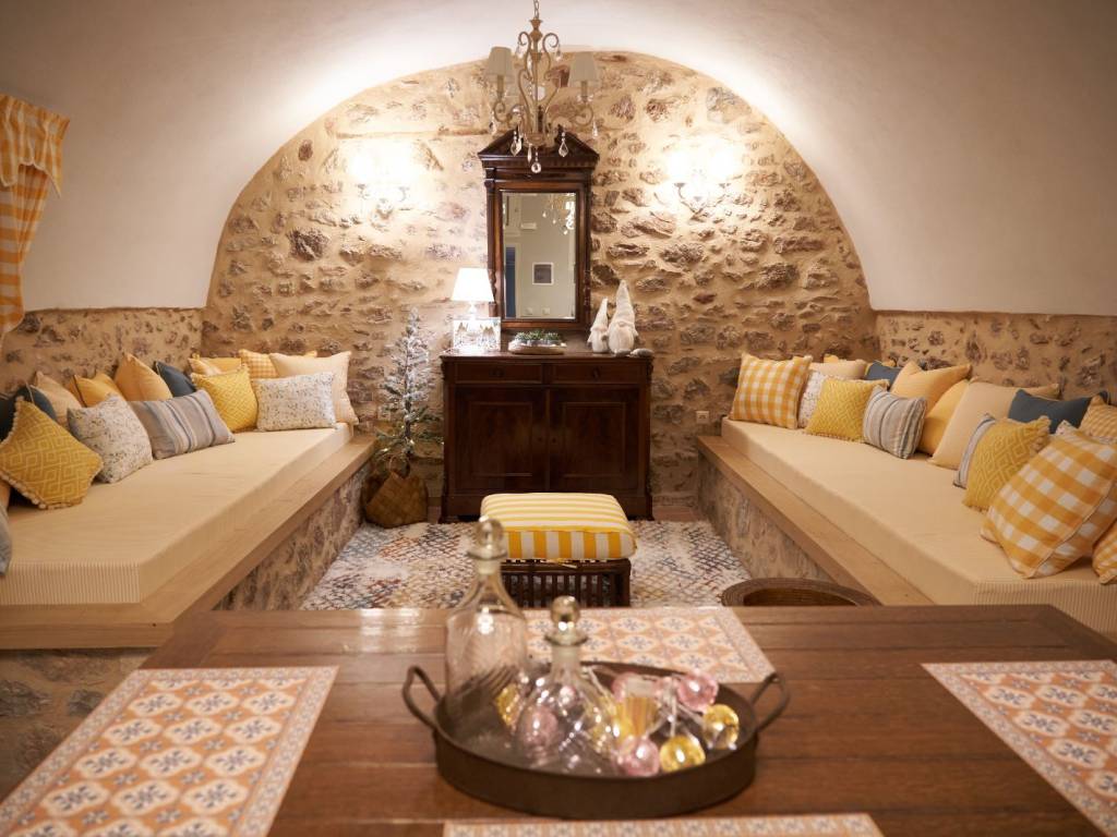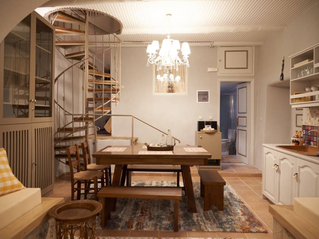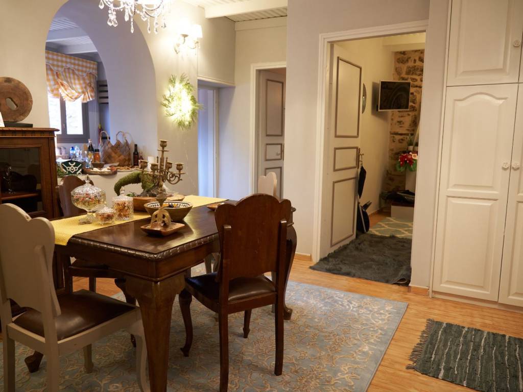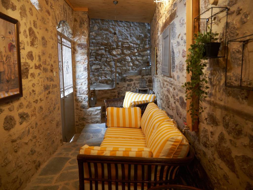 Είναι χτισμένο στο πιο αμφιθεατρικό σημείο της περιοχής προσφέροντας μαγική θέα στον ανοιχτό ορίζοντα. Είναι ένα διώροφο πλήρως ανακαινισμένο κτίριο. Ξεκινάμε την εικονική περιήγηση από το ισόγειο: εδώ θα βρείτε ένα χώρο υποδοχής και μπροστά σας ένα τραπέζι με ξύλινους πάγκους. Αριστερά υπάρχουν δύο μεγάλοι καναπέδες ( μήκος περίπου 3,0 x 1,20 m ). Στον ίδιο χώρο, στο ισόγειο, υπάρχει ένα μπάνιο και ένα υπνοδωμάτιο με ένα διπλό κρεβάτι. Από το ισόγειο θα ανεβείτε στον επάνω όροφο μέσω μιας εσωτερικής σκάλας, η οποία θα σας οδηγήσει στην κουζίνα και στα δωμάτια του πάνω ορόφου. Επάνω, υπάρχουν 2 υπνοδωμάτια. Το πρώτο υπνοδωμάτιο περιέχει ένα διπλό κρεβάτι, ενώ το δεύτερο έχει 2 μονά κρεβάτια και τζάκι. Στα αριστερά από την είσοδο βρίσκεται ένας καθιστικός χώρος με μία χτιστή κρεβάτα από τοίχο σε τοίχο ( 3,40 x 1,45 m ) και ένα όμορφο τζάκι. Επιπλέον στον ίδιο όροφο υπάρχει κουζίνα πλήρως εξοπλισμένη, μια μικρή τραπεζαρία, ένα μπάνιο και ένα WC. Το σπίτι διαθέτει 1 μπαλκόνι στον πάνω όροφο και 2 αυλές στον ισόγειο χώρο. Το σπίτι έχει δυο εισόδους σε κάθε όροφο από μια είσοδο – όπου μπορείτε να χρησιμοποιείται και τις δύο – ανάλογα από που έρχεστε. Υπάρχει πολύ κοντά στο σπίτι δημοτικός χώρος παρκινγκ απλά καλύτερα ταξιδέψτε στη Δημητσάνα με το πιο μικρό σας αυτοκίνητο. Βρίσκεται σε απόσταση 100 μέτρων με τα πόδια από την πλατεία της Δημητσάνας,