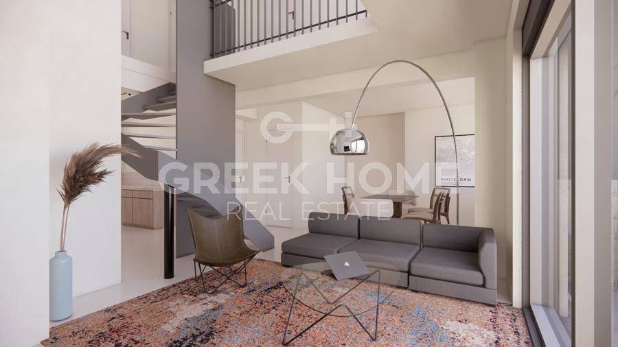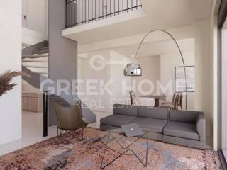 Kallithea (Attica - Southern Suburbs), Agia Eleousa - Full floor Maisonette 120sqm unfurnished, bedrooms 3, levels 2, 6th (65sqm) - 7th (55sqm), penthouse, under construction, constructionstage bricks, year built 2025, energy class A+, living room, hall, kitchen, 2 bathrooms, heating type: autonomous (natural gas), air condition, parking ground floor, quiet, dual aspect apartment, luminous, sea view, frontage, painted, electric roller shutters, storage space 10sqm, solar heater, external thermal insulation, fireplace, balconies, large balconies, tents, elevator, garden, built in appliances, thermal shut-off frames, double glazed windows, door screen, ceramic tiles floors, handicap ramp, office, without common charges, night electricity discount rate, secure door, alarm, video doorbell, luxurious, internal staircase, service room, ev charger, satellite, internet, laundry room, pets allowed, south-western orientation, price is negotiable.