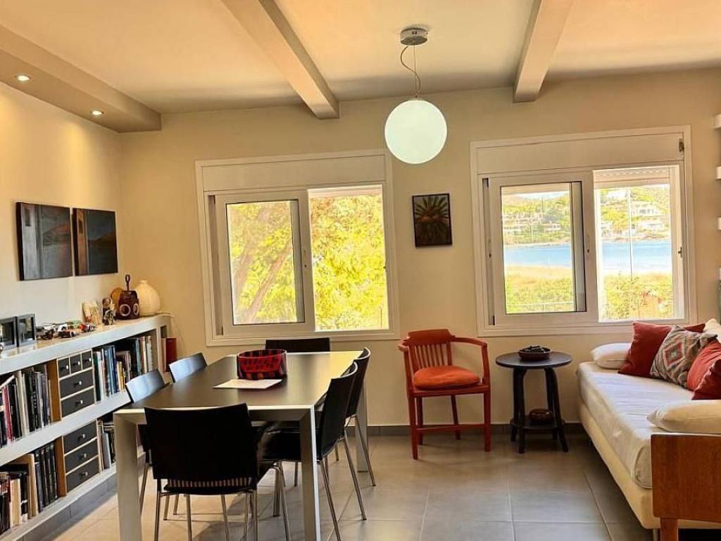 In one of the most beautiful locations in Attica, in Kato Poseidonia, Sounio, just 70 meters from the sea, you will find a stunning residence that perfectly combines the tranquility of nature with the elegance of a full renovation. Covering a total area of 100 sq.m., the house features a spacious living room, two bedrooms, two bathrooms, and 16 sq.m. of auxiliary storage space. Its clean architectural lines and carefully considered details create a home ready to host moments of relaxation and absolute comfort. The surrounding garden is complemented by a private well that provides irrigation for the plants, offering both practicality and self-sufficiency. With panoramic sea views and the rare advantage of direct beach access, this residence is an exceptional opportunity for those seeking a distinctive seaside retreat, where quality of life meets the understated luxury of simplicity.