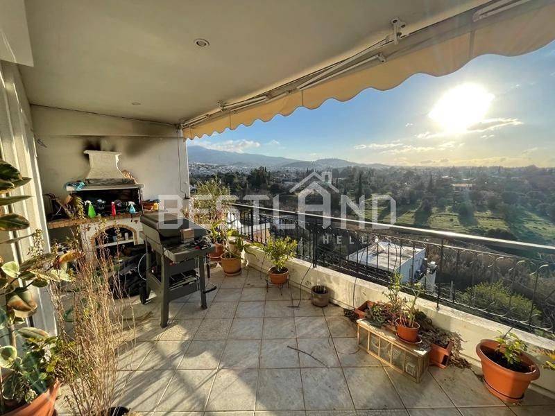 Marousi, Sismanoglio - Apartment 140sqm unfurnished, bedrooms 3, levels 1, 5th, penthouse, excellent condition, year built 1998, renovation year 2020, energy class A+, living room, hall, kitchen, 2 bathrooms, heating type: autonomous (natural gas), air condition, parking, quiet, dual aspect apartment, luminous, unobstructed view view, frontage, solar heater, fireplace, balconies, large balconies, tents, elevator, loft storage, synthetic frames, double glazed windows, ceramic tiles floors, secure door, alarm, video doorbell, luxurious, within city plan, residential zone, east-southern orientation, access from asphalt.