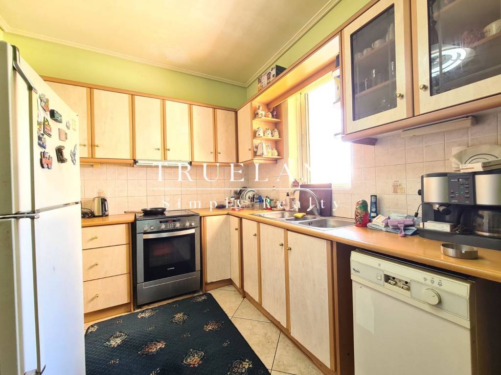 For sale is a 117 sq m 6th floor apartment built in 1999-2000, living-dining room in an open space, separate kitchen, 3 bedrooms, 1 bathroom, 1 WC, balconies front and back, storage room inside the apartment, second storage room below, closed individual parking space, fireplace, double glazing, aluminum frames, awnings, tiled and wood-imitation tiled floors in the bedrooms, security door, air conditioning, alarm system, solar panel, video intercom, autonomous heating. The apartment building belongs to a luxurious residential complex of a well-known manufacturer and has tree-filled gardens and lawns, as well as a stone-built entrance. It is located in a quiet neighborhood near a school and green areas. The apartment has an unobstructed view of the horizon, Parnitha, and looks out to the sea, it is extremely bright and airy. Price: €395,000. TRUELAND REAL ESTATE IKE, Contact Phone: 2144080890, email: info@trueland.gr