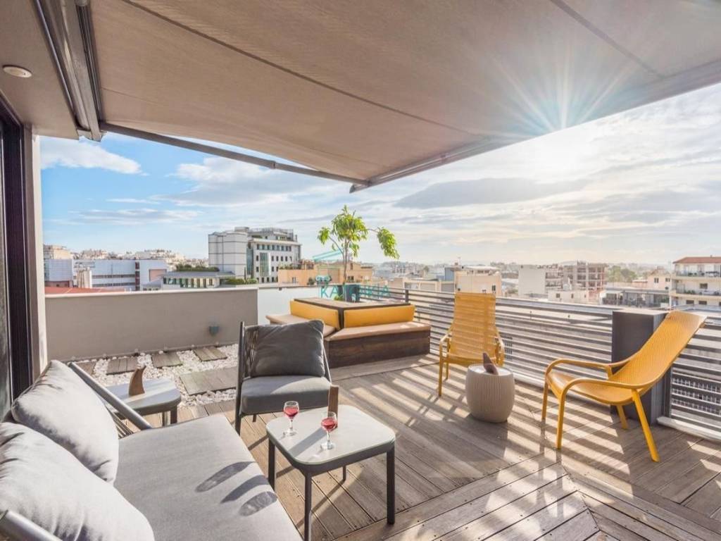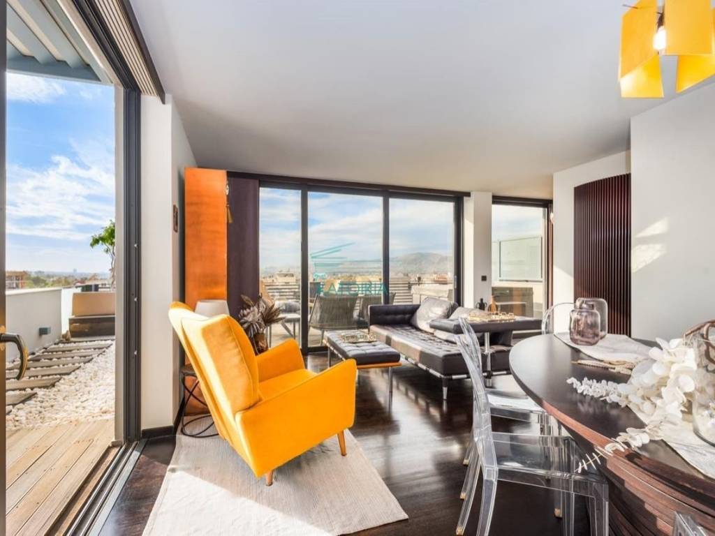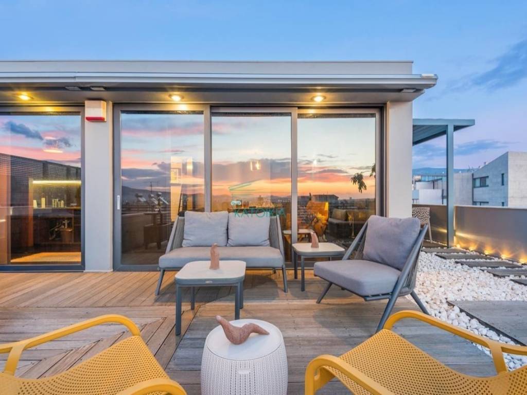 GKAZI, Apartment 52 sq.m., furnished, painted, 1 level, 7th floor 52 sq.m., penthouse, for students, luxurious, for investment, year of construction 2016, n/a, with view acropolis, 1 master b/r, living room, bathroom, kitchen, double-sided, front facing, bright, heating autonomous, natural gas, air condition, with energy class A, with floor type n/a, with n/a joinery, double glass pane, double glazing, awnings, internal staircase, elevator, disabled access, door tv, security door, alarm, veranda, terrace, pets allowed, jacuzzi, open garage, piloti, code 58435