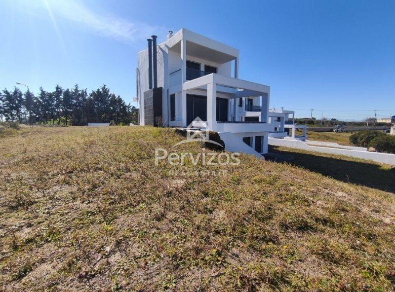 For sale detached house of 265 sq.m. on a private 2,000 sq.m. plot in Plagiari, Thessaloniki. The residence offers spacious living areas, 4 bedrooms, playroom, garden and unobstructed open views, ideal for family living in a quiet location with easy access to the city and airport.