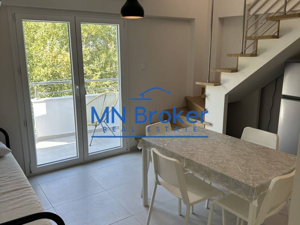Apartment For rent, floor: 3rd, 4th (2 Levels), in Kallikrateia. The Apartment is 57 sq.m.. It consists of: 2 bedrooms (1 Master), 1 bathrooms, 1 kitchens, 1 living rooms. The property was built in 2024. Its heating is Electricity, Air conditioning, Solar water system are also available, it has Alluminum frames with Double glazed - Energy Efficient windows, the energy certificate is: A and its floors are Tiles. The property's status is: New development, it is close to Park, Sea, Seaside, School, Square, Church, Kindergarten, Public market, Super Market, City Center, 350 Meters from sea, it has Park, Openness, Unobstructed view. The Apartment is Furnished, Penthouse, Bright, Airy, Sunny, Seaside and it also has the following unique features and advantages: Window Screens, Elevator, Electric Appliances, Attic, Internal staircase, Security door. Price: €480. MN Broker Real Estate, contact phone: 6940100858, email: mnbrokerrealestate@gmail.com, website: