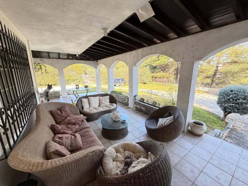 In Trilofos, for sale a 3-storey detached house of 340 m² on a fenced plot of 4,000 m². The property is located in a quiet and green environment and offers privacy and comfortable living. Layout: Ground floor - 120 m²: comfortable living room with fireplace, separate kitchen, 1 bedroom and 1 bathroom 1st floor - 120 m²: 4 bedrooms (one master with its own bathroom), dressing room and 1 bathroom Semi-basement floor - 100 m²: living room with open plan kitchen and fireplace, 1 bedroom, 1 bathroom and boiler room The floors communicate with each other by an internal staircase, but there are also 2 independent entrances. Additionally: - underfloor heating in all areas - fitted wardrobes in the bedrooms - swimming pool (6m * 12m) - garage for cars - BBQ area with outdoor kitchen - storage areas - automatic watering system - garden with fruit trees and ornamental plants