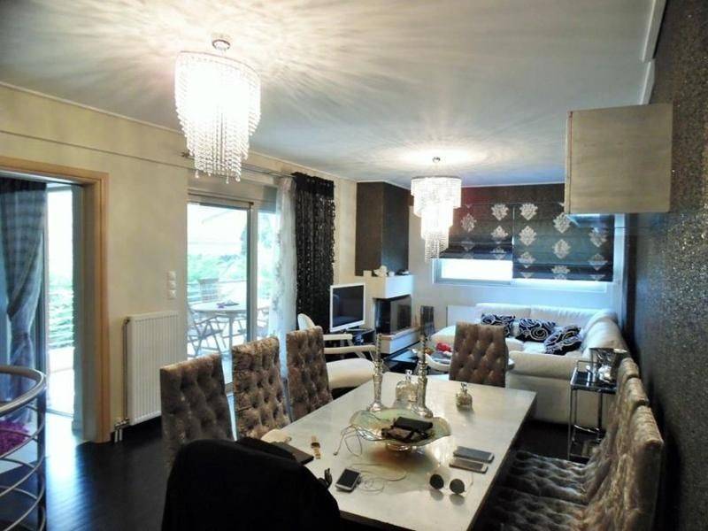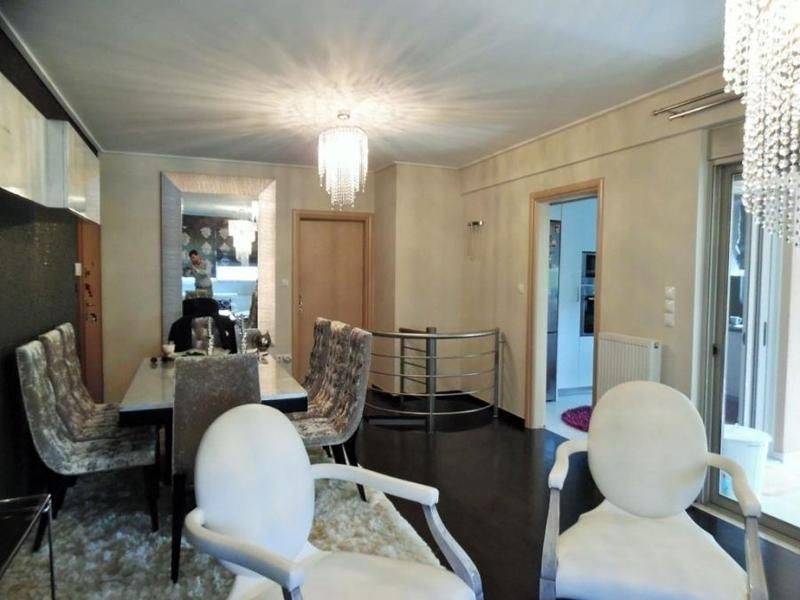Melissia, Orio Kifisias - Apartment 126sqm fully furnished, bedrooms 3, levels 1, ground floor, excellent condition, year built 2010, energy class B, living room, hall, kitchen, bathroom, wc, heating type: autonomous (oil), air condition, a/c type splits, parking covered, quiet, dual aspect apartment, luminous, unobstructed view view, frontage, painted, electric roller shutters, fireplace, balconies, large balconies, elevator, garden, built in appliances, aluminum frames, double glazed windows, door screen, marble floors, separate kitchen, secure door, alarm, luxurious, residential zone.