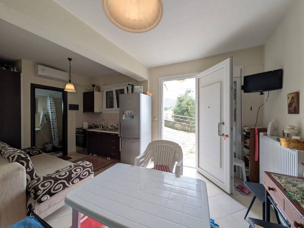 πανοραμική θέα. - Ανεξάρτητο ισόγειο studio 23,81τ.μ. με θέα, αποτελούμενο από ένα ενιαίο χώρο με κουζίνα και το μπάνιο. Το διαμέρισμα διαθέτει μεγάλη βεράντα , συνθετικά κουφώματα, πόρτα ασφαλείας και ατομική θέρμανση πετρελαίου με ωρομέτρηση. Αποτελείται από 2 άνετα υπνοδωμάτια με ντουλάπες, σαλοτραπεζαρία, χωριστή κουζίνα, μπάνιο και wc.