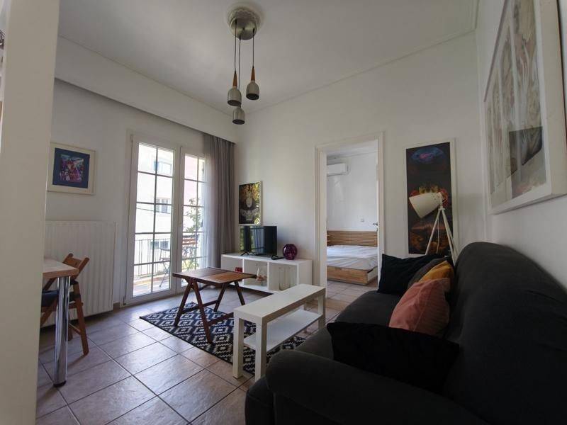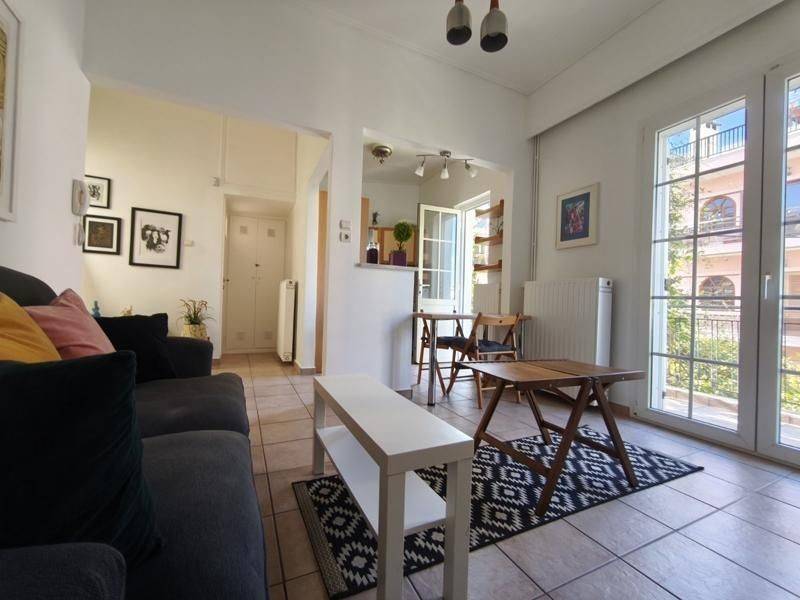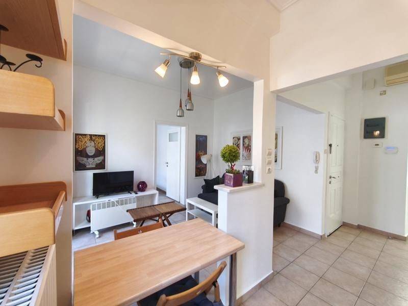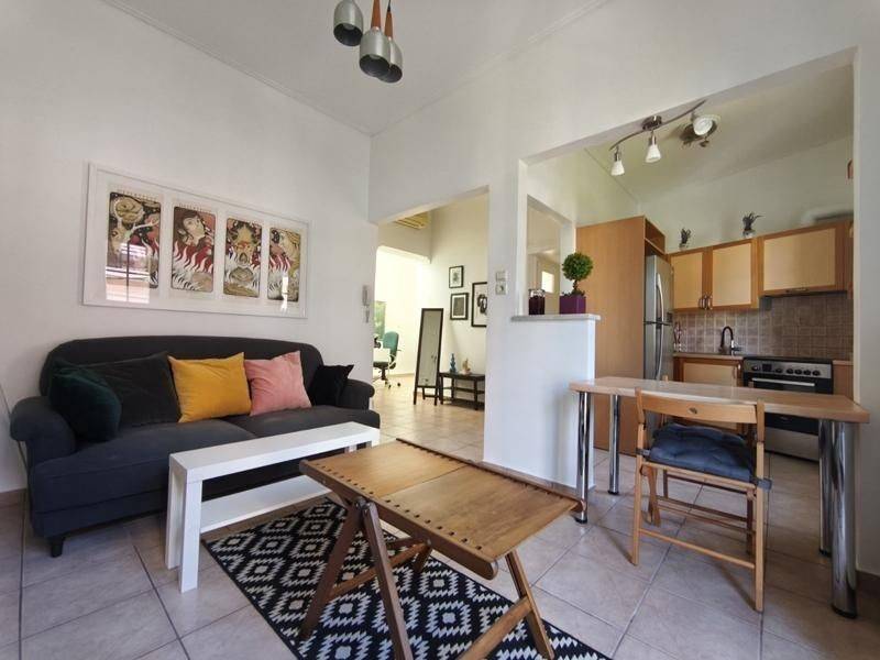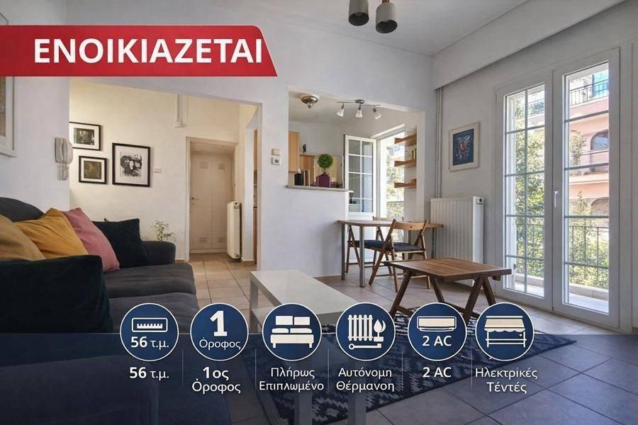 Vyronas - Apartment 56sqm fully furnished, bedroom, levels 1, 1st, renovated, year built 1970, renovation year 2026, energy class C, living room, kitchen, bathroom, heating type: autonomous (oil), luminous, balconies, tents, synthetic frames, double glazed windows, ceramic tiles floors, secure door, alarm, residential zone.