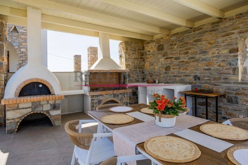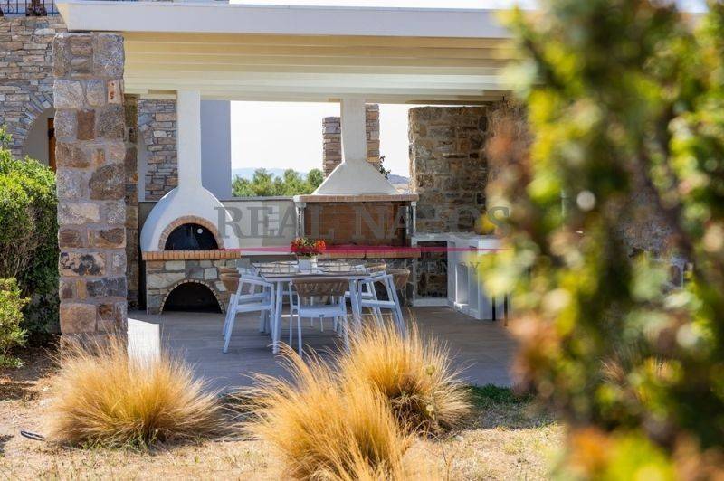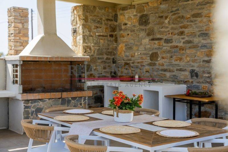 Located in the sought-after area of Agia Anna, Naxos, this beautiful three-level house offers a total living area of 189 m² and is set on a landscaped plot of 1,500 m², in a quiet and peaceful environment. The property enjoys easy access via an asphalt road, combining comfort, privacy and practicality. It is ideally positioned close to major tourist areas while remaining serene and residential. The house consists of a basement of 58.32 m², a ground floor of 71.96 m² and an upper floor of 57.90 m². The interior includes four bedrooms, three bathrooms, a bright living room and a fully equipped kitchen. Outdoor living spaces are enhanced by a 15 m² semi-outdoor area, a veranda with pergola and an outdoor barbecue, perfect for enjoying the Mediterranean lifestyle. The property also features closed underground parking spaces and is offered fully furnished. With an excellent sea view, this home represents a unique opportunity, whether as a holiday residence or a tourism-oriented investment. It is located just five minutes by car from the popular sandy beaches of Agia Anna and Plaka, approximately fifteen minutes from Naxos town (Chora) and around ten minutes from Naxos airport.