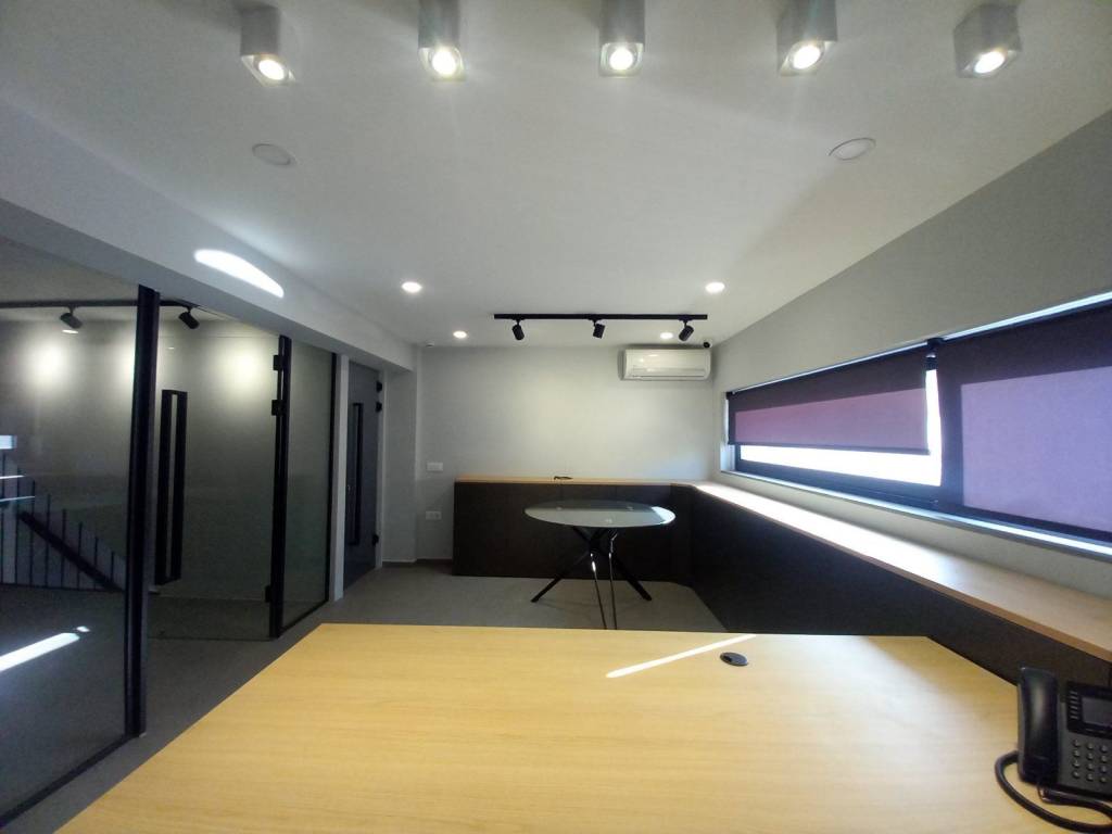 Γραφείο υψηλής αισθητικής πλήρως ανακαινισμένο του 2025 συνολικού εμβαδού 122 τ.μ (ισόγειο 38,40 ημιορόφου 38,40 και υπόγειο χώρο 45 τ.μ), στην περιοχή Άγιος Γεράσιμος πλησίον vesomare, δίπλα σε στάση αστικού, στάση προαστιακού, μίνι market, παραλιακής οδού 200 μέτρων από την θάλασσα και σε απόσταση 10 λεπτών από το κέντρο της πόλης. Αποτελείται από ισόγειο όπου διαθέτει έναν μεγάλο ενιαίο χώρο ώς αίθουσα υποδοχής και ένα ξεχωριστό γραφείο μαζί με κουζινάκι, εσωτερική σιδερένια σκάλα με κρυφό φωτισμό όπου επικοινωνεί στον ημιόροφο και διαθέτει δύο ξεχωριστούς χώρους και ένα w.c καθώς και υπόγειο χώρο όπου αποτελείται από έναν ενιαίο διαμορφωμένο χώρο. Διαθέτει τρία κλιματιστικά inverter, κουφώματα αλουμινίου με διπλά τζάμια, εντοιχιζόμενες ντουλάπες, ντουλάπια κουζίνας μαζί με ηλεκτρικές συσκευές (ψυγειάκια), κάμερες επιτήρησης, τηλεφωνικό κέντρο, συναγερμός, φωτιστικά οροφής, πόρτες και χωρίσματα με διπλό τζάμι, πάτωμα από πλακάκι, εξοπλισμό γραφείου, πόρτα ασφαλείας και μεγάλους αποθηκευτικούς. Τιμή: 800 ευρώ. Link: https://youtube.com/shorts/Rv96PRikSbo