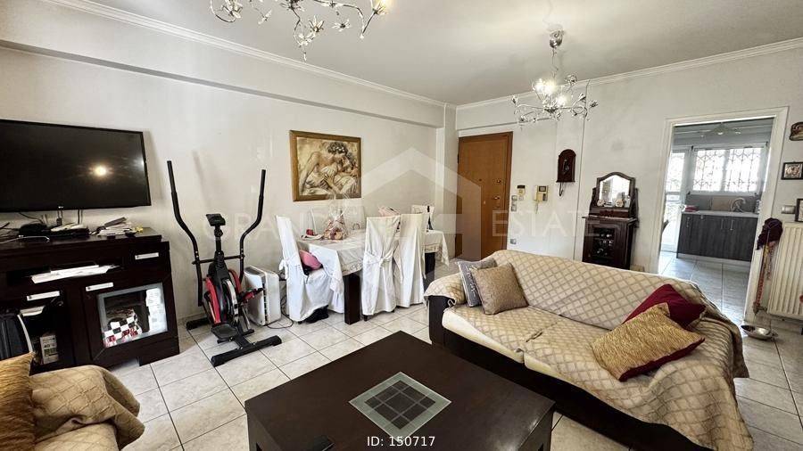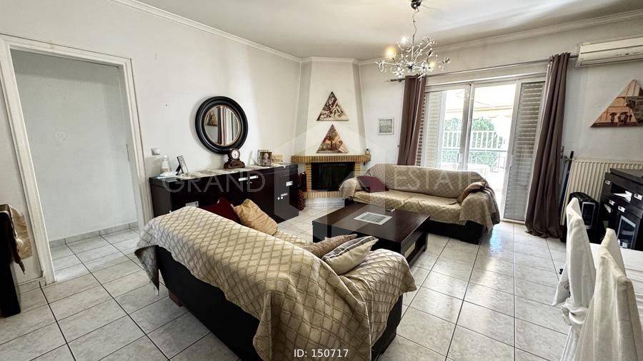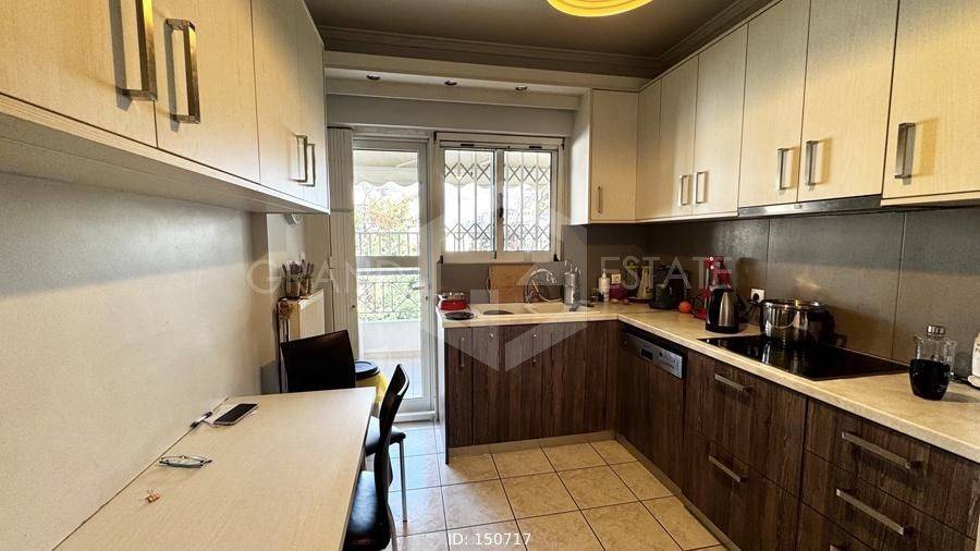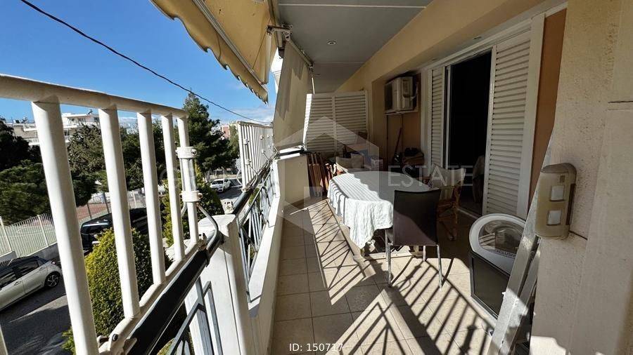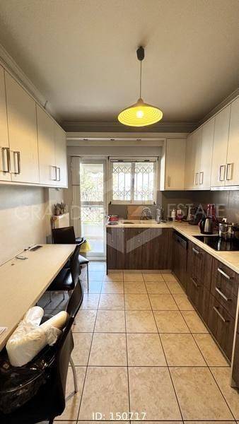 Alimos, Kalamaki - Apartment 104sqm plot 418sqm, electrical appliances furnished, bedrooms 3, levels 1, 1st, excellent condition, year built 2004, energy class B, living room, hall, kitchen, bathroom, wc, heating type: autonomous (oil), air condition, parking covered, quiet, dual aspect apartment, luminous, unobstructed view view, frontage, storage space 7sqm, solar heater, fireplace, balconies, tents, elevator, garden, aluminum frames, double glazed windows, door screen, wood & tile floors, separate kitchen, night electricity discount rate, secure door, alarm, video doorbell, pets allowed, within city plan, residential zone, eastern orientation, access from asphalt, close to park (up to 500m), close to school (up to 100m), close to sea (up to 1000m), close to entertainment (up to 1000m), close to market (up to 200m), close to sports facilities (up to 1000m), close to super market (up to 200m).