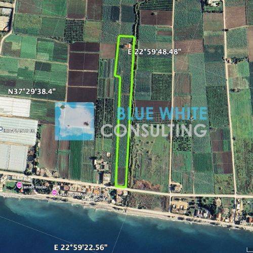 Μια εξαιρετική ευκαιρία δίπλα στη θάλασσα - Παρουσίαση 1,7 εκταρίων εξαιρετικής παράκτιας γης στην Ασίνη, Ιρίων Στην Ασίνη, Παραλία Ιρίων πωλείται επίπεδο αγροτεμάχιο συνολικής επιφάνειας 17 000 τ.μ. με συντελεστή δόμησης: 0.18 και συντελεστή κάλυψης: 0.10, μόνο 75 μέτρα από τη θάλασσα. Διαθέτει πρόσοψη 33 μέτρα και βάθος 515 μέτρα, με απόσταση 20χλμ από την πόλη του Ναυπλίου. Επίσης, εντός του γηπέδου βρίσκονται: α) Ισόγειο Κτίριο κτισμένο με την Ο.Α. 291/1984, με επικάλυψη κεραμοσκεπής εμβαδού 92,44 τ.μ. με χρήση κατοικία. β) Ισόγεια Αποθήκη επιφάνειας 3,02 τ.μ. με επικάλυψη πλάκας οπλισμένου σκυροδέματος. Κατάλληλο για εμπορική και τουριστική εκμετάλλευση. Η αρχική αξία επένδυσης είναι οι 235.000€. Προβλεπόμενη απόδοση επένδυσης 16-20%, με περίοδο διακράτησης 7+ ετών, και με κεντρική ιδέα την ξενοδοχειακή μονάδα. Διαθέσιμος δέον έλεγχος από το Γραφείο μας. Συζητιούνται οι όροι της εκάστοτε προσφοράς, κι ενδέχεται η διαπραγμάτευση τους μόνο υπό καταβολής αξιόλογων προσφορών. Η εμφανιζόμενη διεύθυνση είναι κατά προσέγγιση. Για την διοργάνωση επίσκεψης στο ακίνητο, απαιτείται ο ενδιαφερόμενος να αποστείλει τα πλήρη στοιχεία του στο γραφείο μας βάση του Νόμου 4072/11.4.2012 [παρουσίαση Δ.Α.Τ./Διαβατηρίου, ΑΦΜ, & πλήρη στοιχεία επικοινωνίας]. Κωδικός Ακινήτου BW-P226 | Blue White Consulting | Κινητό (+30) 694.269.8446 / Σταθερό (+30) 210.220.6457