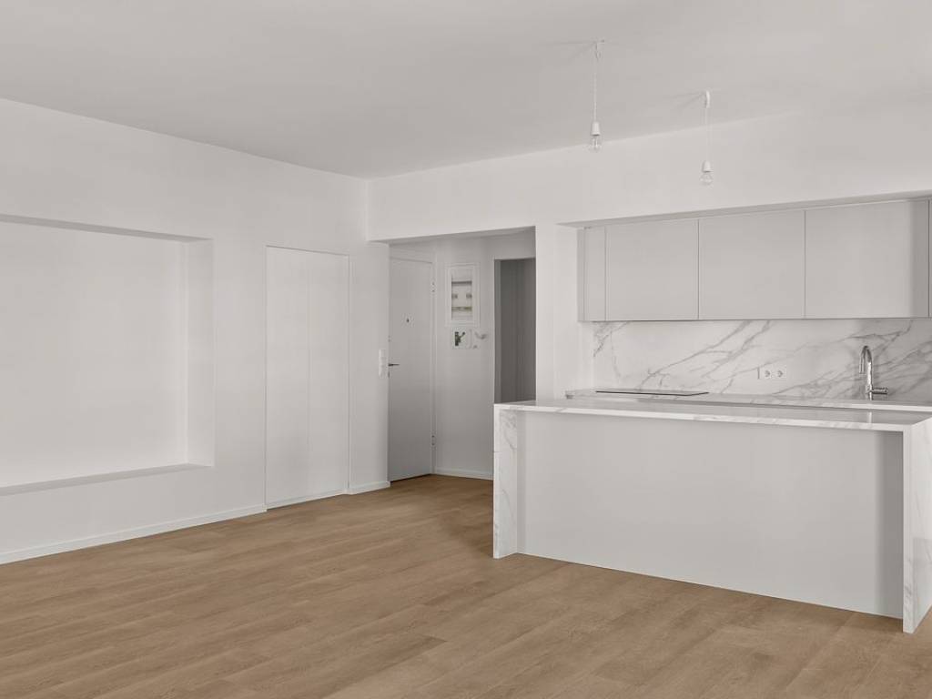 High quality renovation just finished last month. The apartment is excellent, gets a lot of natural light, and has a great layout. It is in a very desirable location in Kallithea. The building does not have private parking.