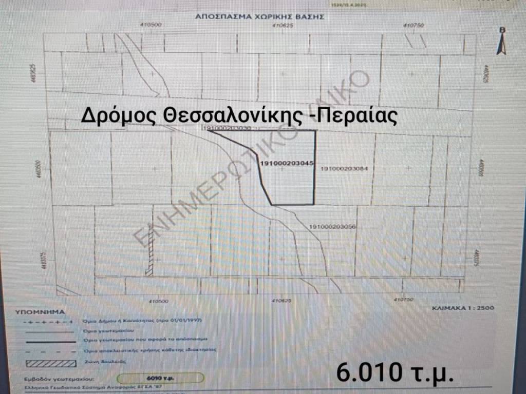 Το ακίνητο είναι γωνιακό και περιφραγμένο από την προσοψή του έχει θέα στη θάλασσα και βρίσκεται σε απόσταση μόλις 2 χλμ. από τη θάλασσα και 1χλμ. από το Discount Market στην πρώτη είσοδο προς Περαία της λεωφόρου Θεσσαλονίκης-Περαίας, έναντι του νηπιαγωγείου UMBRELLA 2. Στην περιοχή έχει και βρεφικό σταθμό, πολυκαταστήματα, καθώς είναι και κατοικημένη περιοχή,με πολλές μονοκατοικίες. Βρίσκεται πολύ κοντά στο υπό κατασκευήν Τεχνολογικό Πάρκο THESSINTEC και εντός της Ζ.Α.Ε. (Ζώνη Άμεσης Επιρροής) σύμφωνα με τη εγκεκριμμένη Σ.Μ.Π.Ε.(Στρατηγική Μελέτη Περιβαλλοντικών Επιπτώσεων) του άνω Έργου. Είναι κατάλληλο για κάθε προβλεπόμενη από το νόμο χρήση.