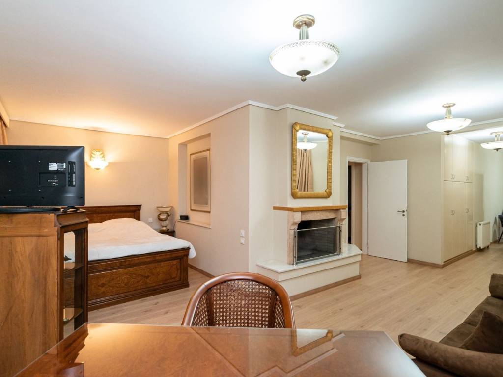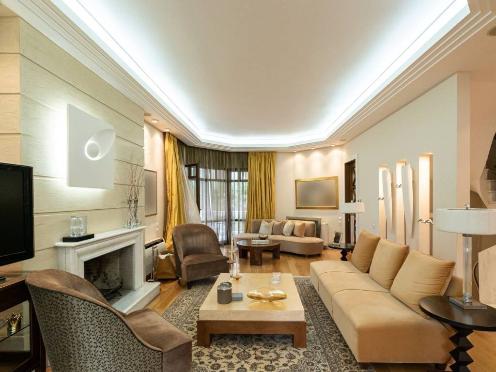 In a quiet yet central neighborhood of Nea Kifisia, an exceptional 484 sq.m. detached house of contemporary design is available for sale, offering easy access to main roads and ensuring practical daily living. The property, set on a 475 sq.m. plot, is developed over four levels connected by an internal staircase. The ground floor features a spacious living room with fireplace and dining area, a kitchen with direct access to the garden, a guest WC, and large surrounding terraces. On the first floor, there is a master bedroom en suite, plus two additional bedrooms served by another full bathroom. The attic includes a bedroom en suite with a fireplace, which can also function as a home office. The playroom level offers a versatile open-plan living area, an independent studio with bedroom, fireplace, kitchen, and bathroom, a staff room, laundry, and storage space, providing maximum flexibility of use. Outside, the property is surrounded by a landscaped garden with seating and a BBQ area, and includes a covered parking space. This is a high-quality, fully equipped detached house with generous spaces and multiple living possibilities, ideal for a family or as an investment, located in one of the most desirable areas of the Northern Suburbs.