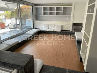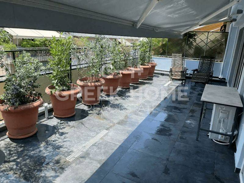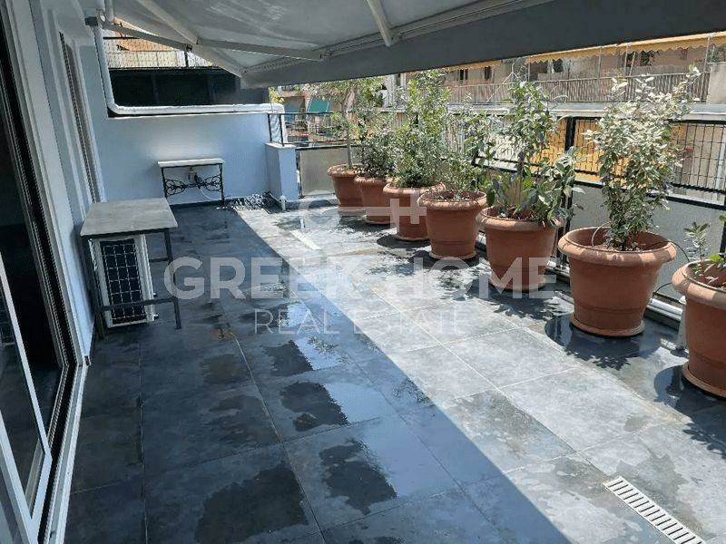 Pangrati - Apartment 103sqm bedrooms 2, 4th, penthouse, renovated, year built 1972, renovation year 2023, energy class D, living room, hall, kitchen, bathroom, wc, heating type: central (natural gas), air condition, quiet, dual aspect apartment, luminous, frontage, painted, solar heater, fireplace, balconies, tents, elevator, aluminum frames, door screen, ceramic tiles floors, separate kitchen, secure door, pets allowed.