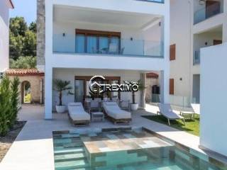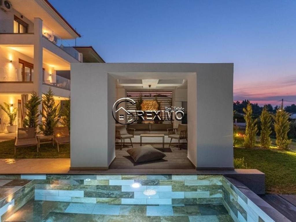 Prestigious Location near One of the Most Beautiful Coastlines of Halkidiki Located close to the picturesque area of Glarokavos, just a few minutes from Pefkohori, this detached villa is set in a high-quality residential environment, surrounded by modern villas and green spaces. The area is extremely sought-after both for private use and for high-end investments, thanks to its natural beauty, tranquility, and proximity to beaches with crystal-clear waters. Architecture, Space and Light with Views of the Aegean Sea The villa offers a living area of 148 sq.m., arranged over three levels, each designed to be filled with natural light and panoramic sea views. The open-plan living room with a modern kitchen flows seamlessly into a spacious veranda and outdoor relaxation area, creating a continuous connection between interior and nature. Large windows frame the turquoise waters, turning every room into a scene of Mediterranean beauty. Luxury Living with Complete Privacy All four bedrooms are sea-facing and enjoy uninterrupted panoramic views, offering a sense of hotel-style comfort and serenity. The three bathrooms are finished in a contemporary style, enhancing the feeling of a high-class property. The outdoor areas are equally impressive — a landscaped garden, a spacious south-facing terrace and an elegant swimming pool that transforms the villa into a true private seaside oasis. Ideal Villa for Family, Guests and Investment in Halkidiki The outdoor area features a summer kitchen, barbecue and multifunctional space for family gatherings and entertaining guests. Additional amenities such as parking, storage room, outdoor bathroom and shower add practicality and comfort to everyday living. High-End Property with Sea Views and Strong Investment Potential This fully furnished villa in Glarokavos represents an excellent opportunity to acquire a luxury property in one of the fastest-growing areas of Kassandra. The combination of panoramic sea views, private swimming pool, privacy and prestigious location makes it highly attractive both for personal use and for investors seeking a secure and profitable asset in Halkidiki. Contact us: +30 694 527 5975