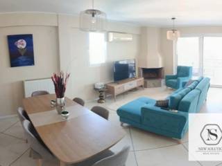 Vari-Varkiza, Varkiza, Floor Apartment For Rent, 106 sq.m., Property Status: Amazing, Floor: 4th, 3 Bedrooms 1 Kitchen(s), 1 Bathroom(s), 1 WC, Heating: Autonomous - Petrol, View: Sea view, Building Year: 2000, Energy Certificate: C, 1 parking(s), Floor type: Wooden floors + Tiles, Type of door frames: Aluminum, Features: Elevator, Security door, Storage room, Fireplace, Electric Appliances, Double Glazed Windows, Balconies, Luxury, Penthouse, Roadside, Bright, AirConditioning, Solar water system, Price: 1.600€. NEW SOLUTION REAL ESTATE, Tel: (+30) 210 9680099-(6944848414), email: info@newsolution.gr