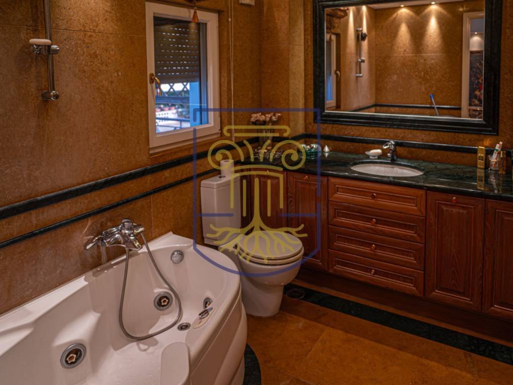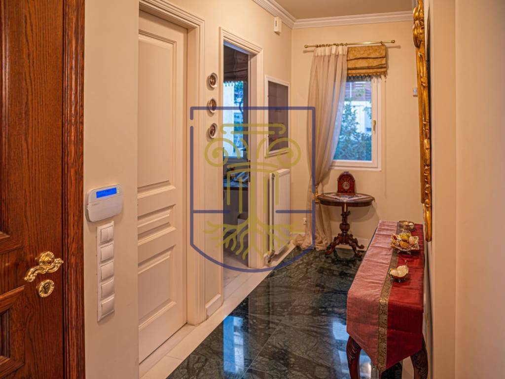 For Sale: 250 sq.m. Villa–Maisonette, built in 2003, in Glyfada (Aixoni area). The property is arranged over the 1st and 2nd floors and features a private entrance, offering absolute privacy and the feel of a detached residence. The home comprises three bedrooms, one of which is a master bedroom with en-suite bathroom, as well as an additional bathroom and a guest WC. The interiors are spacious and filled with natural light, featuring luxurious marble floors. The living room stands out with Guatemalan paleolithic-style marble, inspired by the aesthetics of historic architectural spaces. Additional features include a marble-clad fireplace made of Penteli marble, a home office, air conditioning, solar water heater, and autonomous oil heating with boiler. The property is equipped with an alarm system, security doors, awnings, and insect screens, and is serviced by an elevator. Outdoor areas include generous verandas, balconies, and a roof terrace with open views, ideal for relaxation or entertaining. The property also offers two storage rooms and ample parking facilities: two outdoor parking spaces and a closed garage accommodating two vehicles. Furniture may remain upon negotiation, allowing for immediate occupancy. The location combines tranquility with a high quality of life, offering easy access to shops, schools, and public transportation. It is within close proximity to Glyfada’s center and the sea, making it an ideal choice both for a family residence and an investment opportunity. Please Note: Address Disclosure: The exact address mentioned in the advertisement is indicative of the property's vicinity and not the actual one.