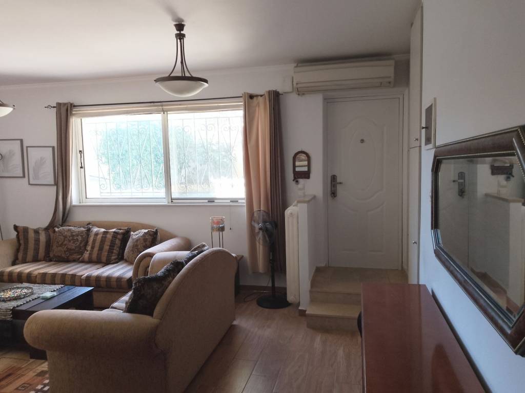 A 65m2 basement apartment located in a beautiful part of Melissia consisting of a living room, security door, kitchen, a big bathroom with a shower stall, one big bedroom with a window and one smaller room suitable for an office of a child and natural gas heating.It has a tile floor on the exterior and space for a table and barbeque, a parking space with a garage door and a private enterance. The price is 120.000. No real estate agents please.