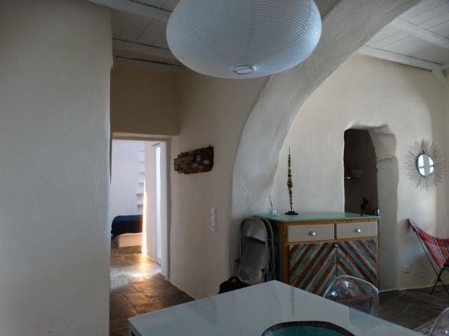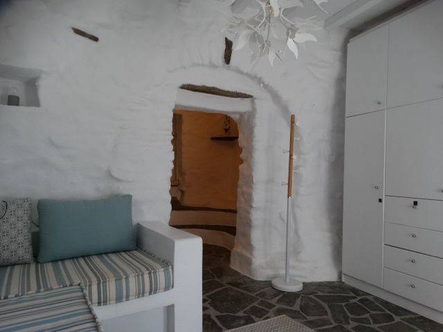 TRIANTAROS VILLAGE SETTLEMENT, STONE-BUILT HOUSE OF 121sqm ON 2 LEVELS, HAVING WONDERFUL ARCHITECTURAL ELEMENTS IN A VERY QUIET LOCATION, READY FOR INHABITATION In a privileged location, at the upper limit of the TRIANTAROS Village Settlement, in a very quiet spot with a great sense of privacy, a Stone-Built House on 2 Levels, meticulously restored ready for occupation. The house is airy, has a Total Area of 121.60sqm., where its 2 levels have separate entrances but also communicate with an internal staircase. The Upper Floor enjoys a very quiet Terrace with a view to the sea and has a secondary Service Entrance in its rear which is in contact to a Pedestrian pathway. This level has an area of 60.48 sq m, and is consisting of the Main Living Room with a separate Dining Area, the Kitchen room with all the traditional elements perfectly preserved and renovated, the Master Bedroom and a full Bathroom. The internal concrete staircase leads us to the Ground Floor level which also has its own independent entrance from a Pedestrian Street. Its surface area is 61.10 sq m and consists of the Second Living Room, 2 additional Bedrooms, a full Bathroom and a Storage-Laundry Room. With all the up-to-date comforts and utilities and services connected, the Residence is ready for immediate occupancy. A great advantage is the proximity of the Parking offering a very easy access to.