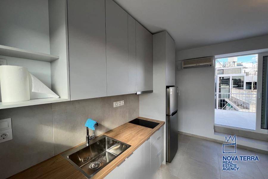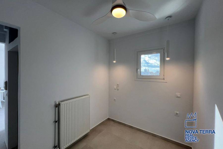 PANKRATI - ALSOS Penthouse Rental 33 sq.m Year Built 1980 Renovated in 2025 1 Room 7th Floor View: Various Features: Balcony, Bath, Escalator, Kitchen, Living Room, Refurbished Tile Flooring Access Road Aluminium Panels Bright Luxury Minimal Painted Security Door In Perfect Condition Property ID: 53007 Visit www.nova-terra.gr for more information.
