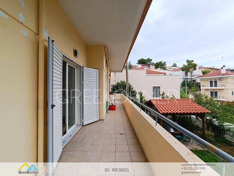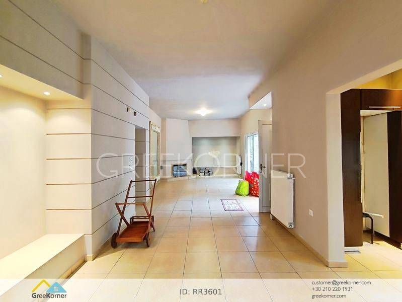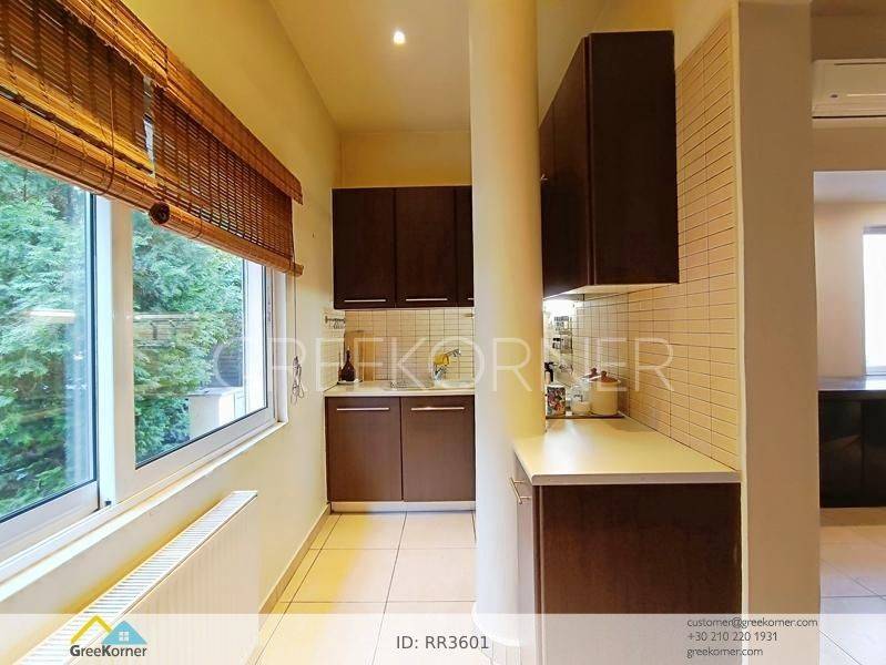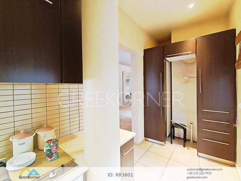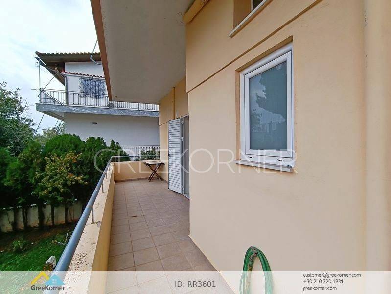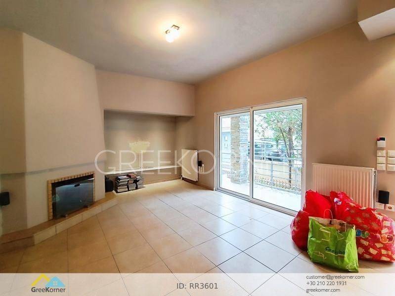 Nea Penteli - Floor Apartment 120sqm electrical appliances furnished, bedrooms 2, levels 1, ground floor, very good condition, energy class D, living room, kitchen, bathroom, heating type: autonomous (oil), air condition, quiet, dual aspect apartment, luminous, unobstructed view view, frontage, painted, drop ceiling, electric roller shutters, solar heater, boiler, fireplace, balconies, loft storage, built in appliances, aluminum frames, double glazed windows, ceramic tiles floors, without common charges, night electricity discount rate, secure door, alarm, internet, pets allowed, residential zone, access from asphalt.