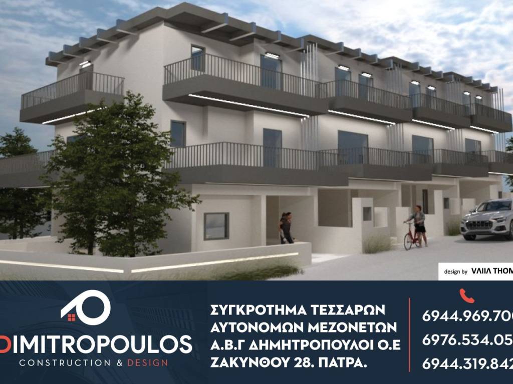 Προς πώληση νεόδμητες υπό κατασκευή αυτόνομες μεζονέτες στα Κάτω Συχαινά Πατρών, σε σύγχρονο συγκρότημα 4 κατοικιών. Διαθέσιμες 2 μεζονέτες 134τμ, 1 μεζονέτα 136τμ και 1 γωνιακή 143τμ, με 3 Υ/Δ, 1 μπάνιο και 1 WC. Περιλαμβάνουν ιδιωτικό κήπο εμπρός και πίσω, μεγάλες βεράντες και θέση στάθμευσης σε πυλωτή. Ενεργειακή κλάση Α+, Ψύξη και θέρμανση με αντλία θερμότητας και fan coil, θερμοπρόσοψη και θερμοδιακοπτόμενα κουφώματα. Θέα προς Πατραϊκό. Απόσταση 10’ από κέντρο Πάτρας και 10’ από Ρίο (Νοσοκομείο/Πανεπιστήμιο). Παράδοση Μάρτιος 2027.
