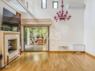 Kifissia, Strofyli - Apartment 280sqm bedrooms 3, master bedroom, levels 4, basement - ground floor - 1st - rooftop room, excellent condition, year built 2000, energy class D, living room, hall, kitchen, 3 bathrooms, wc, heating type: autonomous (oil), air condition, parking covered, quiet, dual aspect apartment, luminous, drop ceiling, electric roller shutters, storage space, fireplace, balconies, garden, built in appliances, aluminum frames, double glazed windows, door screen, wood floors, three phase electricity, secure door, luxurious, swimming pool, private pool, residential zone, access from asphalt.