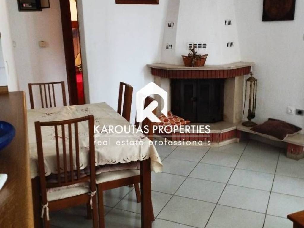 A bright 60 sq. m. apartment is available for rent, located on a raised first floor in a one-storey building in the Arnaia – Palaiochori area. The property offers independent oil heating and consists of two small bedrooms, a living room/kitchen area with a fireplace, and a bathroom.