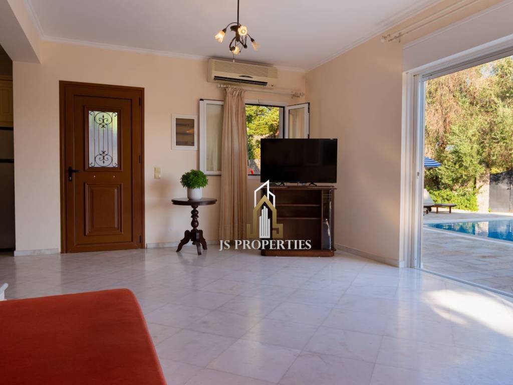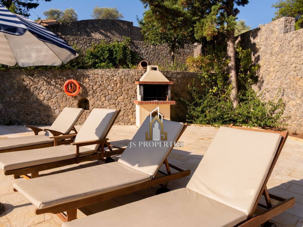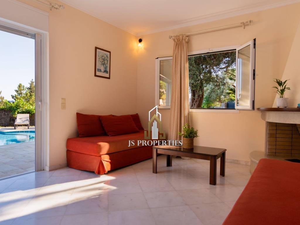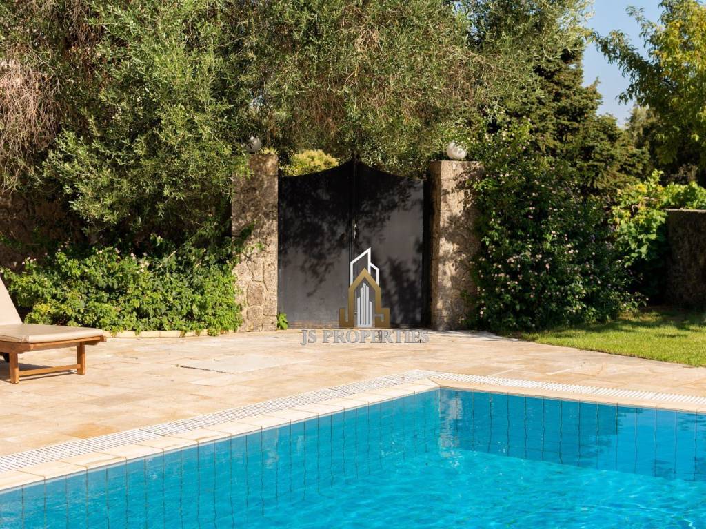 Corfu, Dassia Luxury Furnished Villa of total area 80sqm on a plot of 1000sqm with large garden, bbq, swimming pool, several parking spaces and unlimited views Key features: •Interior luxury: The fully air-conditioned residence features a fully equipped kitchen with high-end appliances. The dining and living room, decorated with large double doors, open seamlessly to the pool and outdoor entertainment area. •Bliss Bedroom: The current large, airy bedroom, with built-in wardrobes and washbasin, is complemented by the addition of a new spacious bedroom. The bathroom, decorated with a full jacuzzi and shower, is paved with exquisite marble that continues throughout the villa, adding a touch of luxury. •Private outdoor retreat: Enjoy privacy and tranquility in the outdoor area, which has parking, a private swimming pool, and a children's, spacious outdoor entertainment area, built barbecue and is enclosed by a built stone wall. Built in 2007, double glazing, aluminum frames, autonomous heating (electricity), air conditioning, solar water heater, air conditioning, storage room, quiet area and 15 minutes walk from the sea Price 460,000€ Property code: 34 For any information contact us
